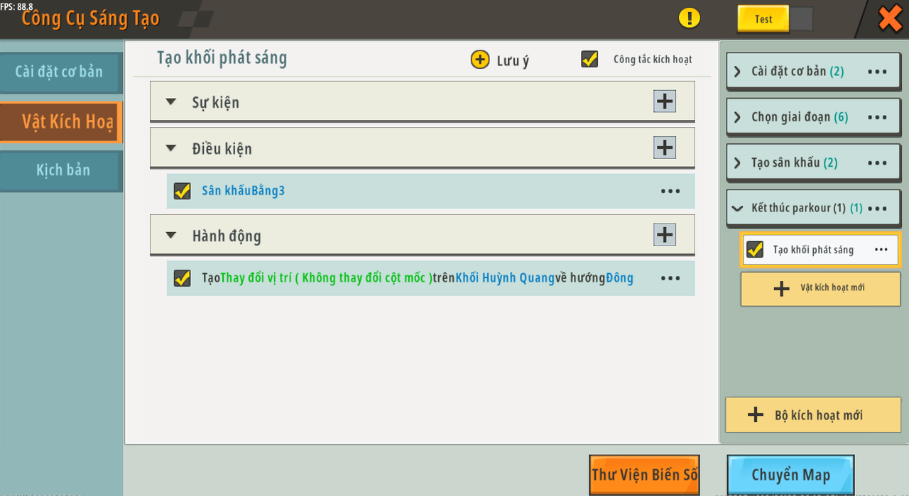 Sau đó, chúng ta cần tạo sân khấu parkour. Đây là kích hoạt chúng ta cần: