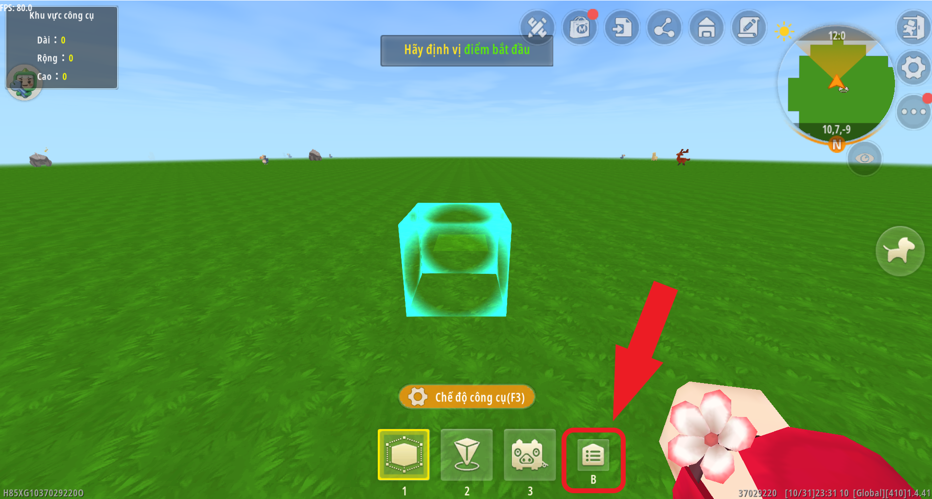 3.Vị trí sẽ được tạo và kích thước của vị trí tối thiểu phải là 1x1x1. \\
