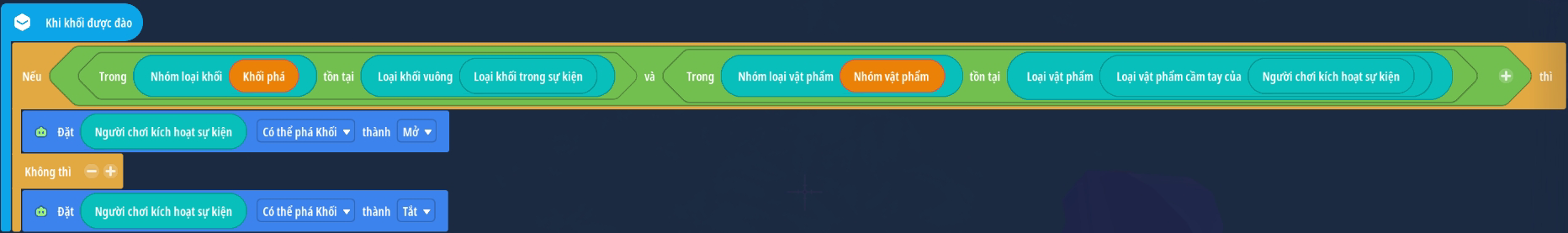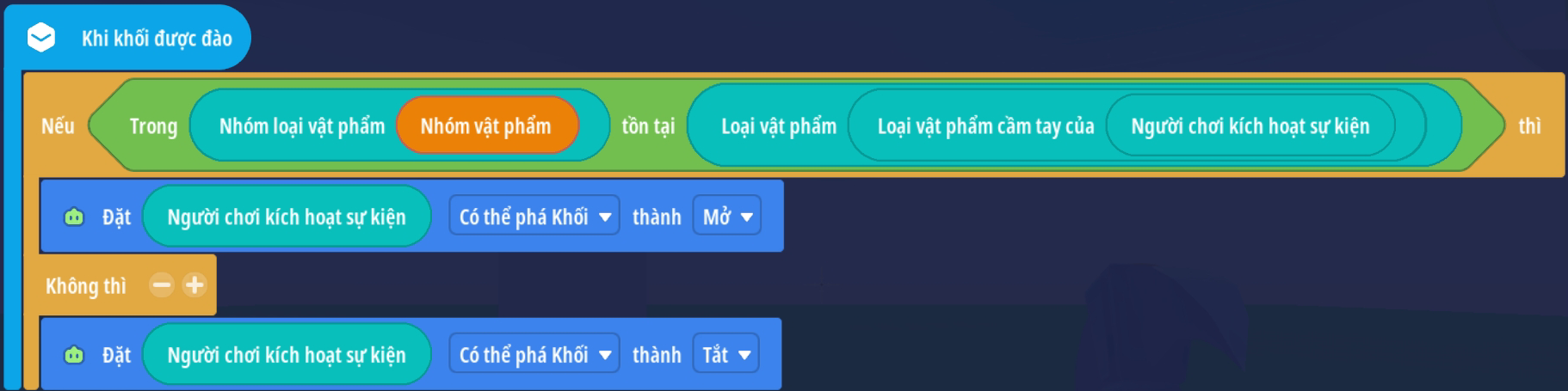 - Mở chức năng phá khối nếu điều kiện thoả mãn, không thì sẽ tắt chức năng
