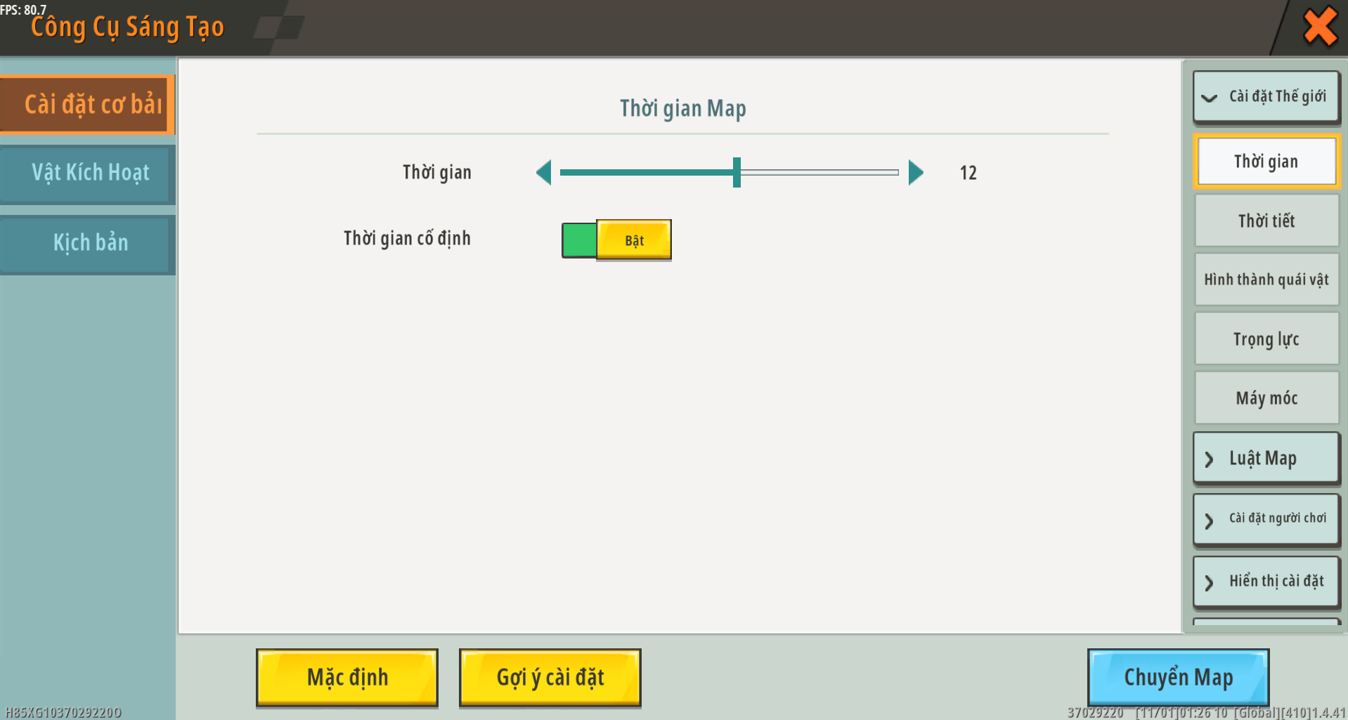 - Thời gian khóa (Bật/Tắt): Đặt xem thời gian có thay đổi theo thời gian chơi của người chơi hay không.