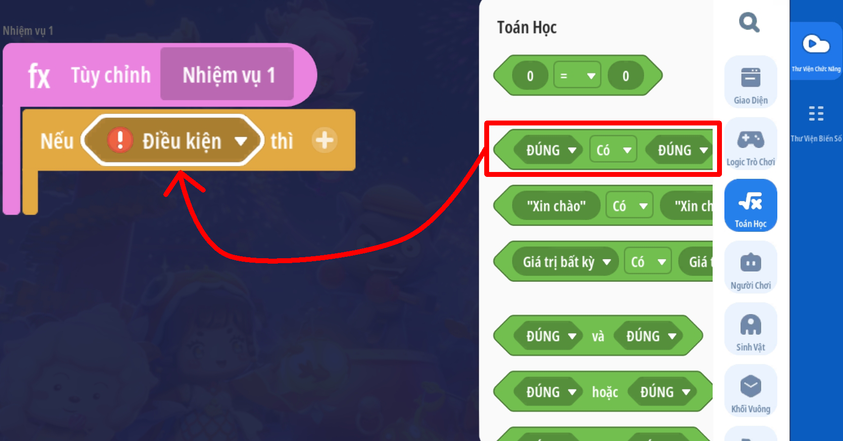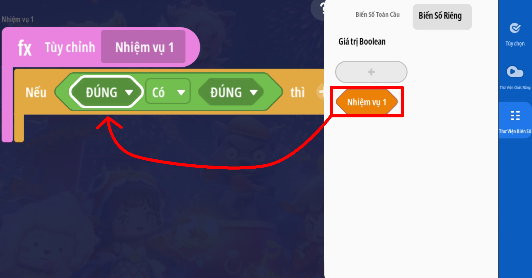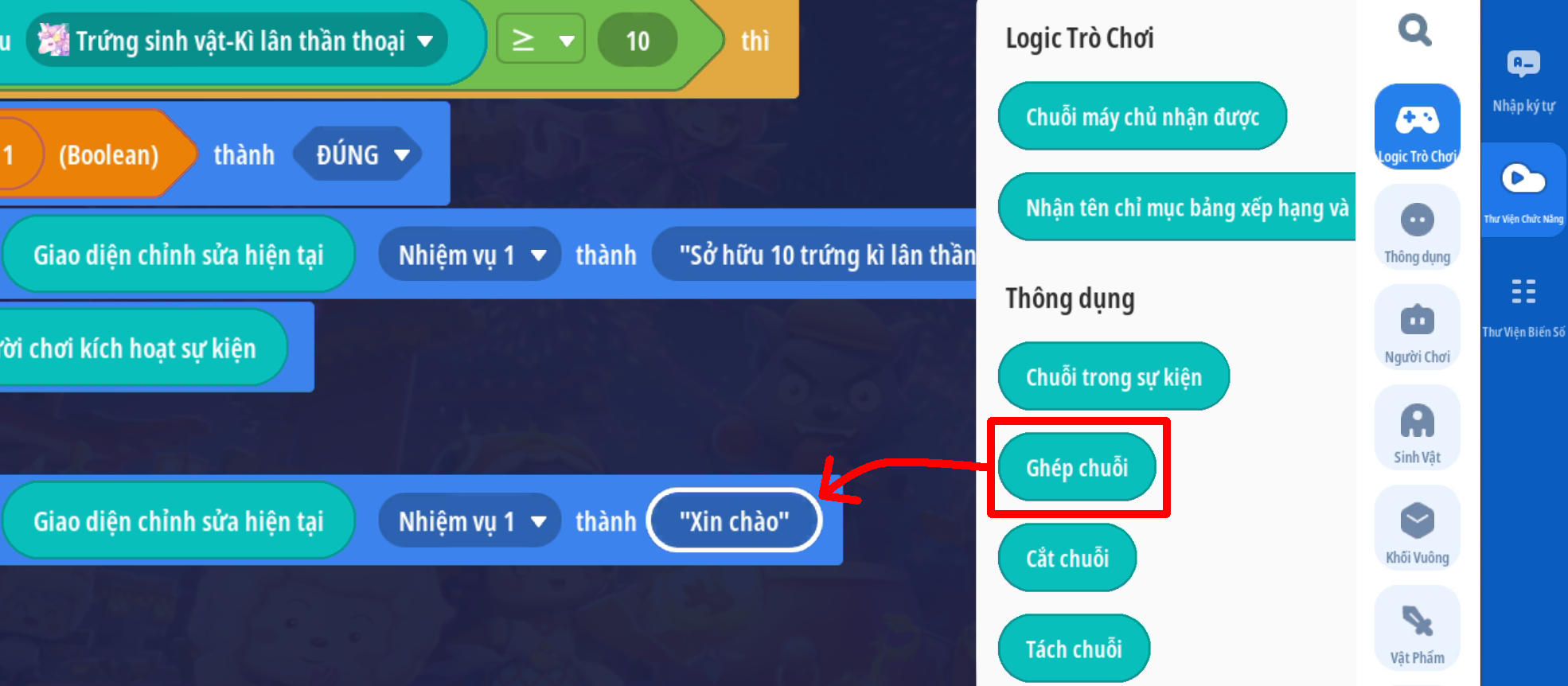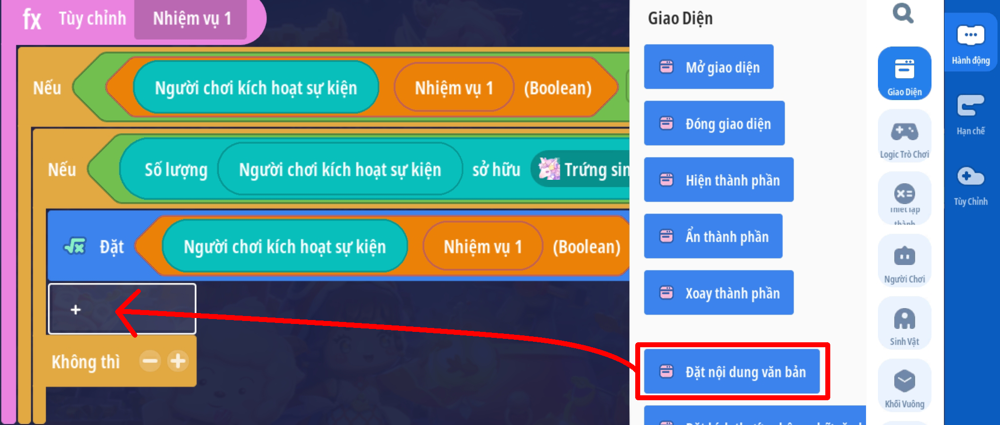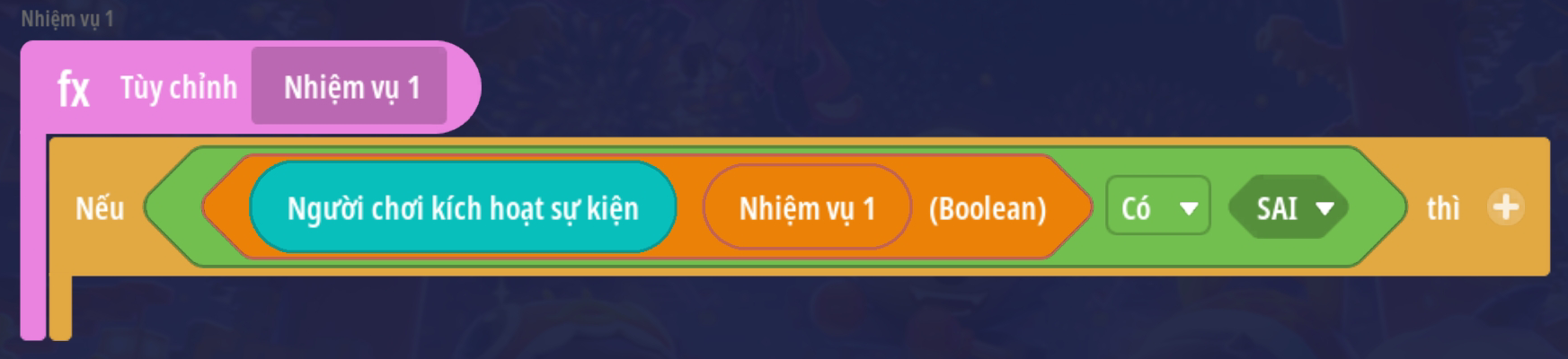 Lưu ý: với các bản đồ có cơ chế lưu tiến trình nên có thêm trigger cập nhật thông tin nhiệm vụ khi người chơi đăng nhập vào trò chơi. Tham khảo mẫu dưới