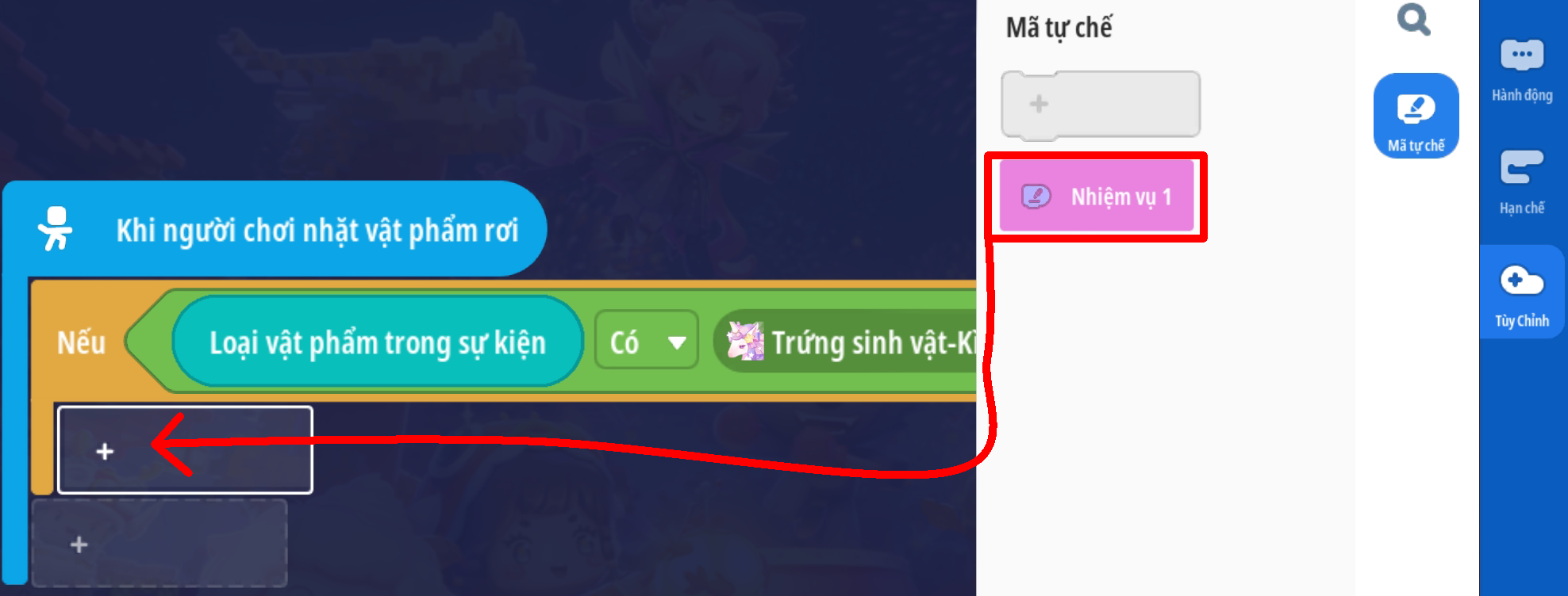 Tạo mã tự chế để thuận tiện cho sự kiện cập nhật tình trạng nhiệm vụ