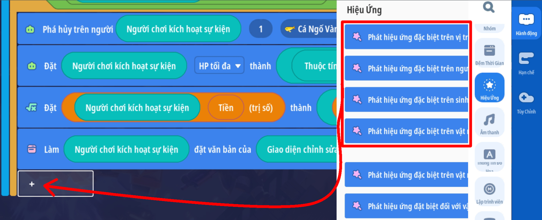 Thêm hành động đặt thuộc tính của người chơi HP tối đa thành giá trị HP tối đa + 5