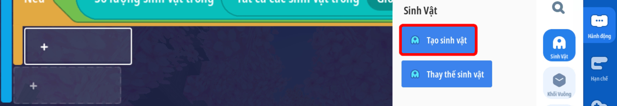 Tạo khu vực nhỏ giới hạn, khu vực trung tâm làm nơi tạo sinh vâtj ( có thể sử dụng trực tiếp khu vực giới hạn )