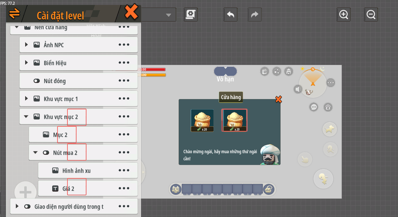 - Biển hiệu cửa hàng và NPC đều là tập hợp con của nền Cửa hàng.