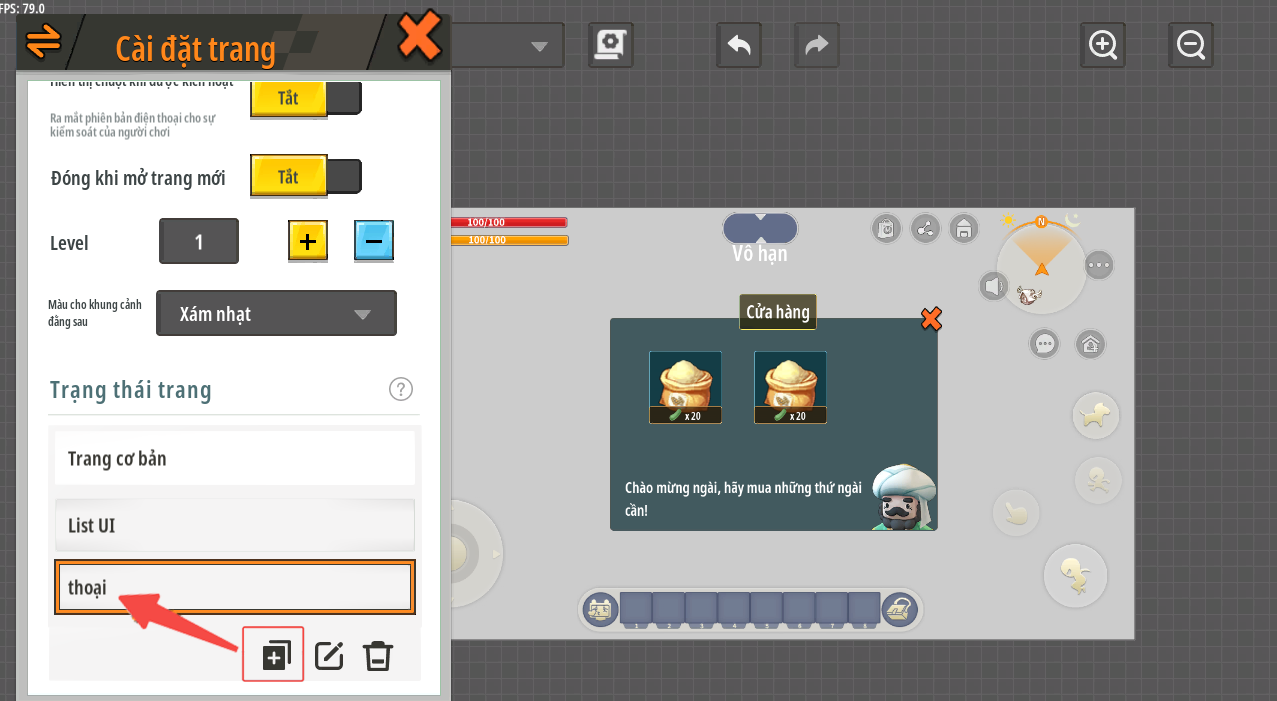 Tạo giao diện UI mới và đặt tên là “store”. Chọn thành phần “nút” để làm lối vào cửa hàng.