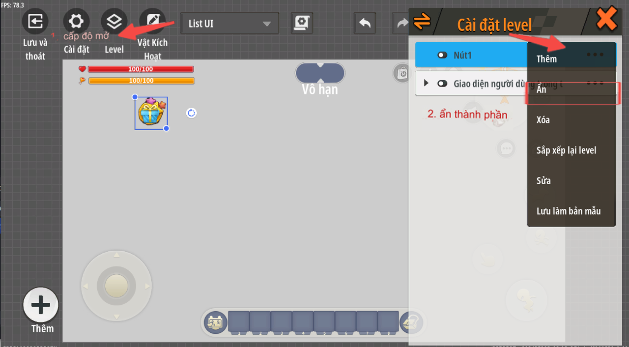 1. Thêm các thành phần UI và điều chỉnh thứ bậc của chúng