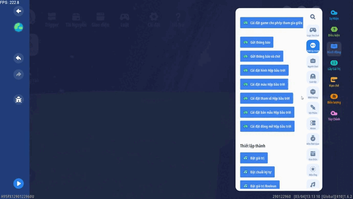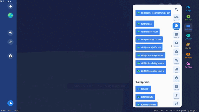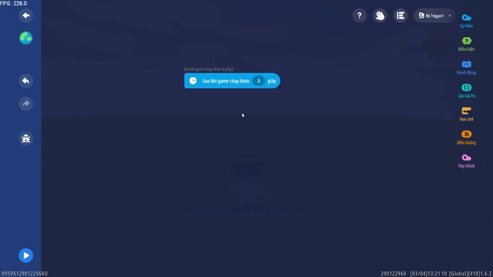 Các bước như sau: đặt sự kiện trigger thành 3 giây mỗi khi trò chơi chạy → đặt mẫu hộp bầu trời thành Fantasy Sky;