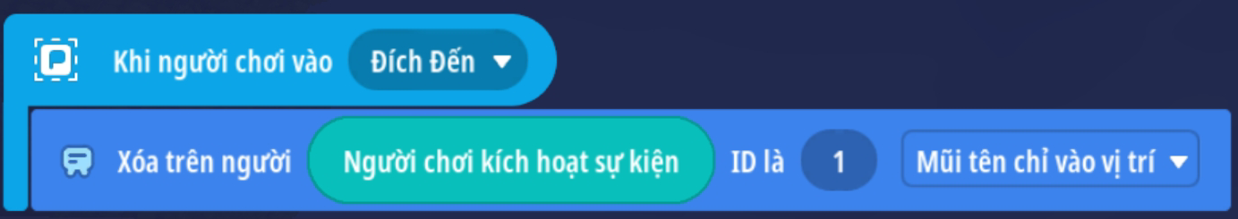 - Sự kiện tham khảo: Người chơi vào khu vực chỉ định ( Khu vực đích đến - hoàn thành )