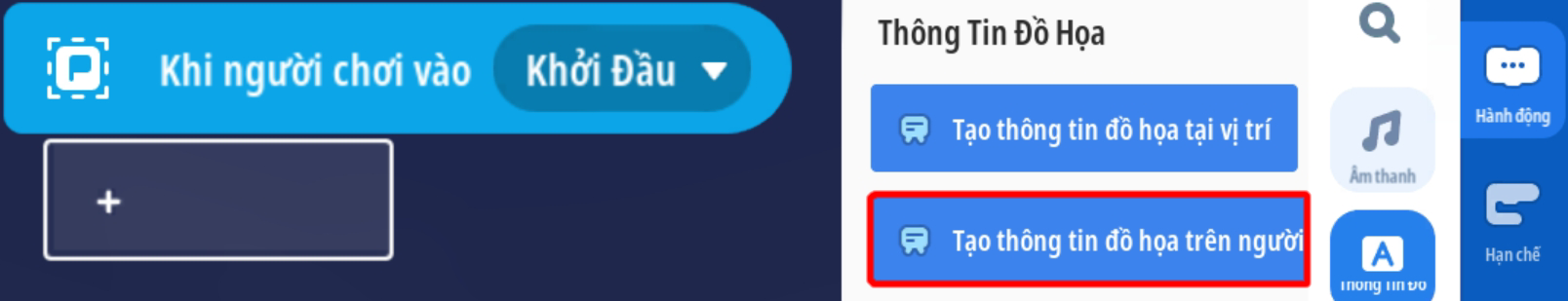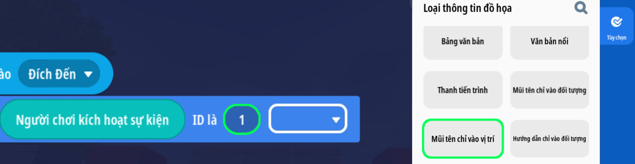 - • Có thể sử dụng các tính năng khác thay thế. Dạng sự kiện kích hoạt hành động khi đọc xong cốt truyện, khi nhấp vào thành phần, khối …