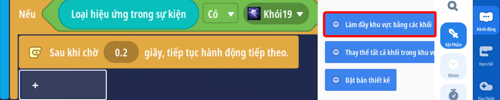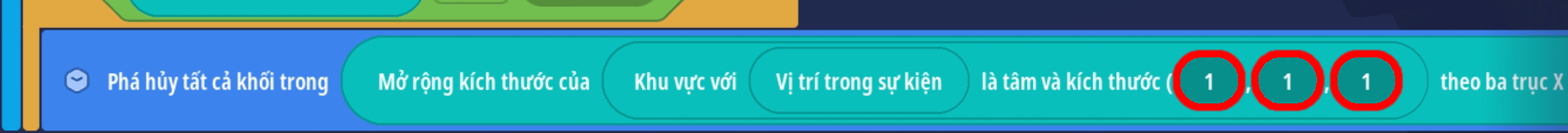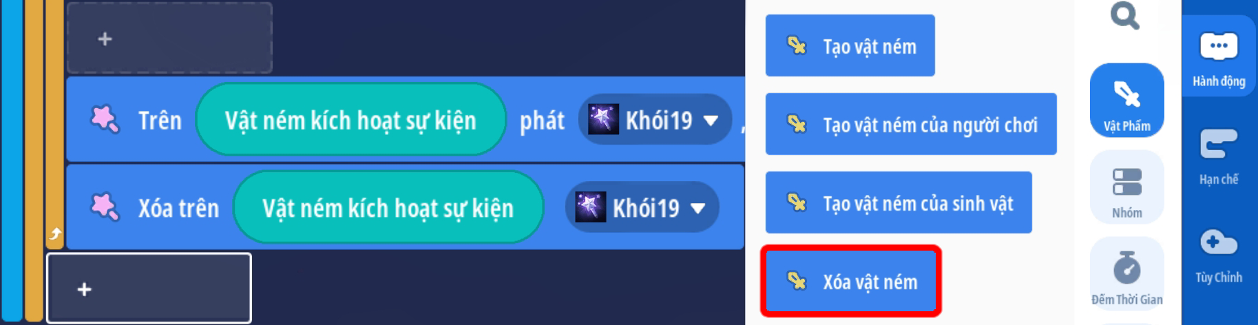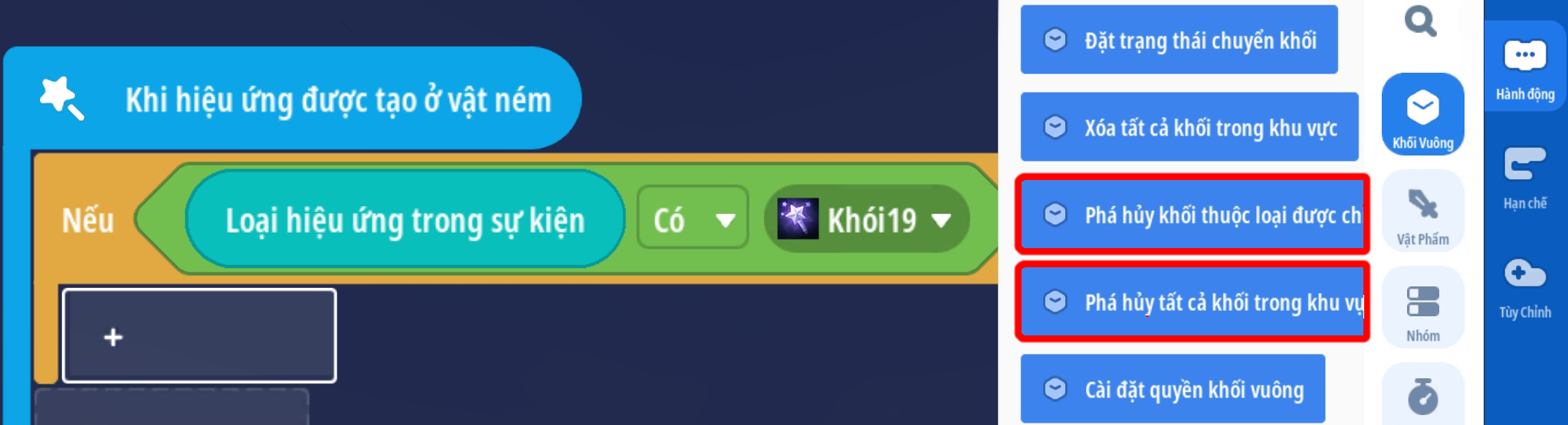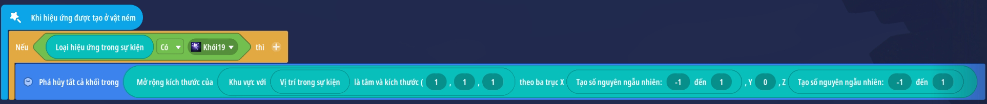 - Vật ném phá hủy: Sử dụng các hành động phá hay xóa khối trong khu vực cần thiết