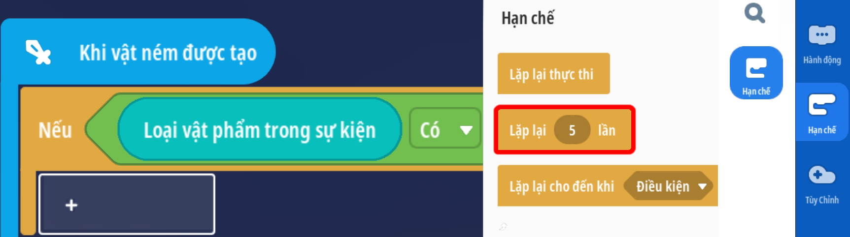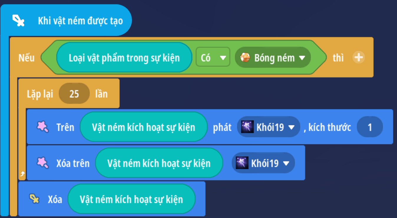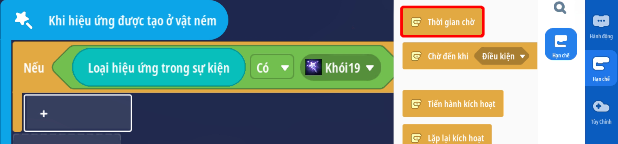 - Vật ném tạo khối ( Mây ): Sử dụng thời gian chờ để tránh vật ném bị mắc kẹp bởi khối tạo ra