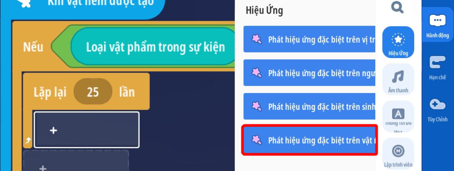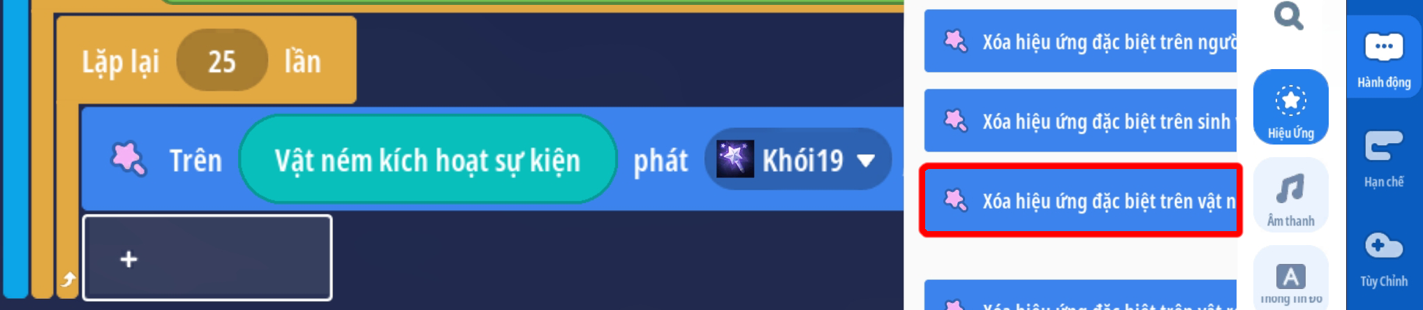 - Xác định khi có hiệu ứng chỉ định được tạo trên vật ném bất kỳ