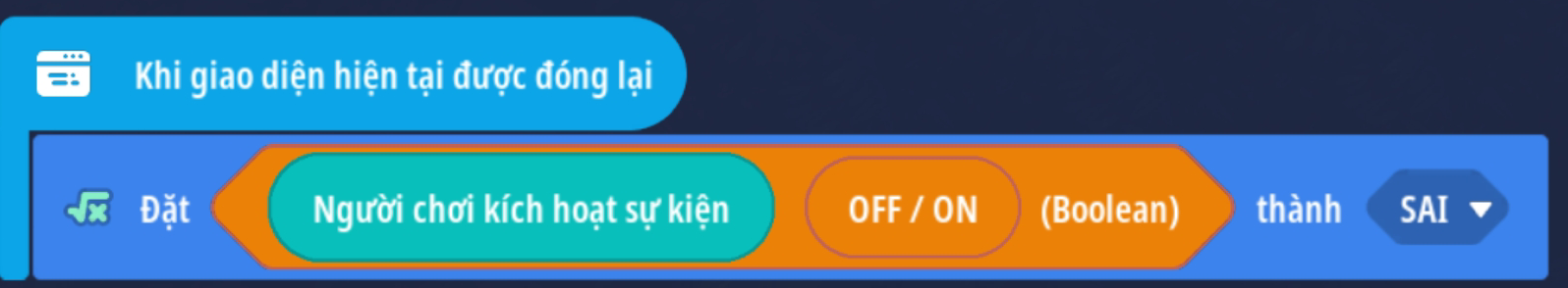 - Đặt giá trị Boolean chỉ định thành Sai để xác định giao diện đã đóng