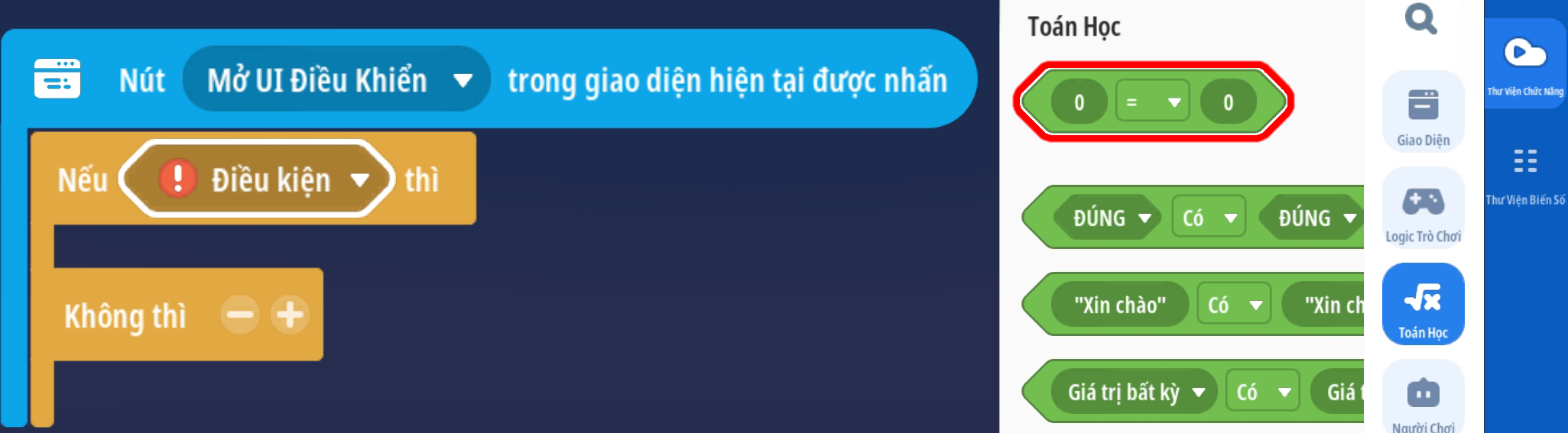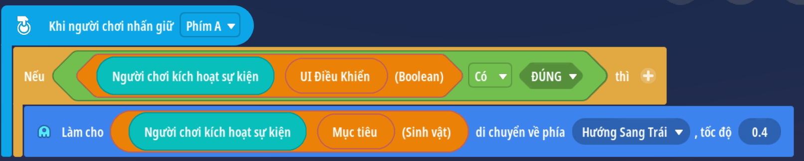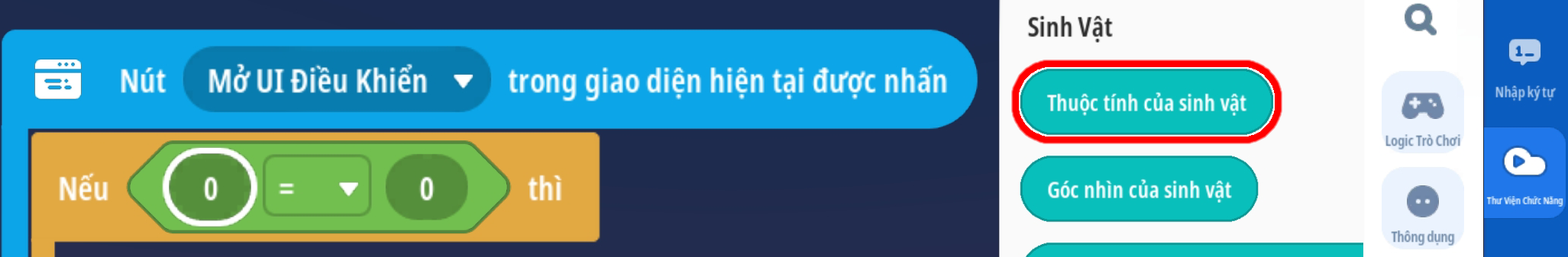 - Sự kiện người chơi nhấp nút mở UI điều khiển với điều kiện sinh vật mục tiêu xác định được ( Sử dụng so sánh giá trị nil để xác định biến riêng đã xác định chưa, với biến nhóm sử dụng chức năng xác định giá trị có tồn tại trong nhóm không )
