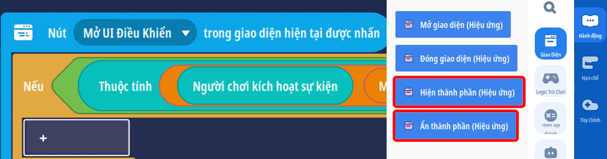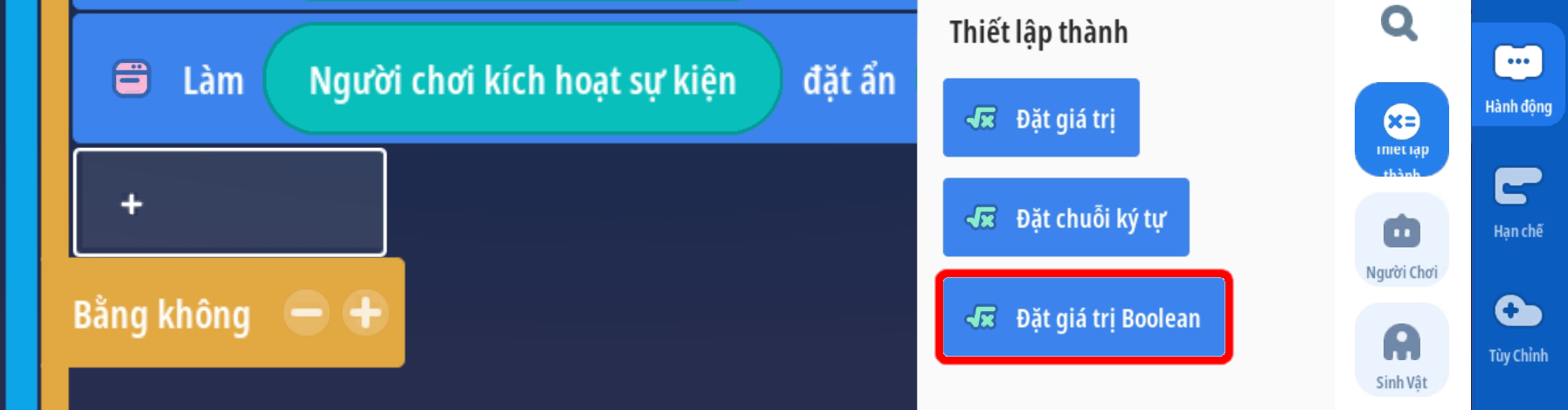 - Đặt giá trị Boolean đã tạo thành Đúng để xác định người chơi đã vào UI điều khiển