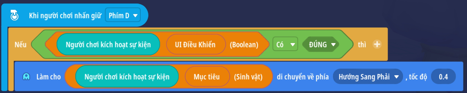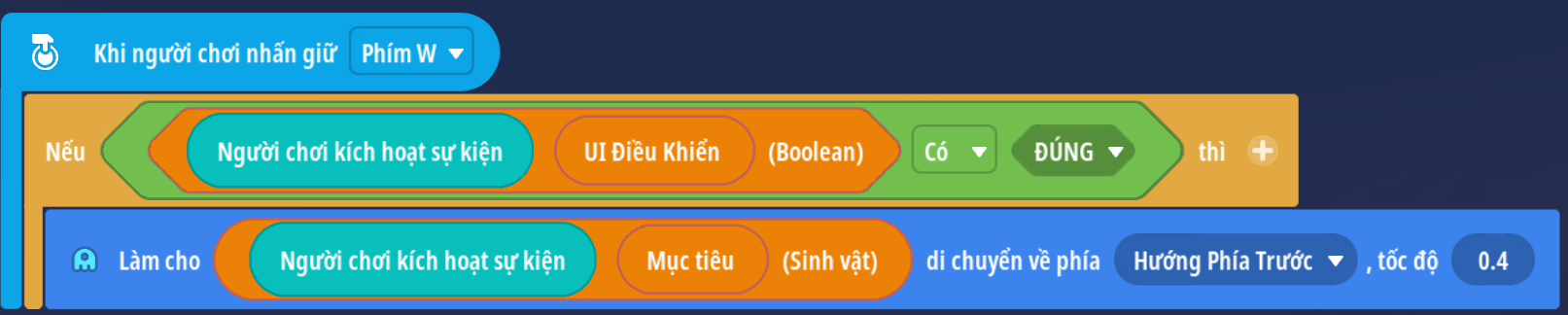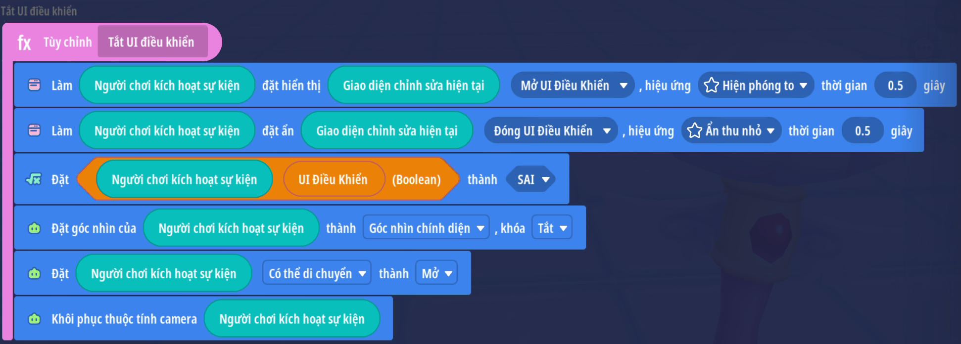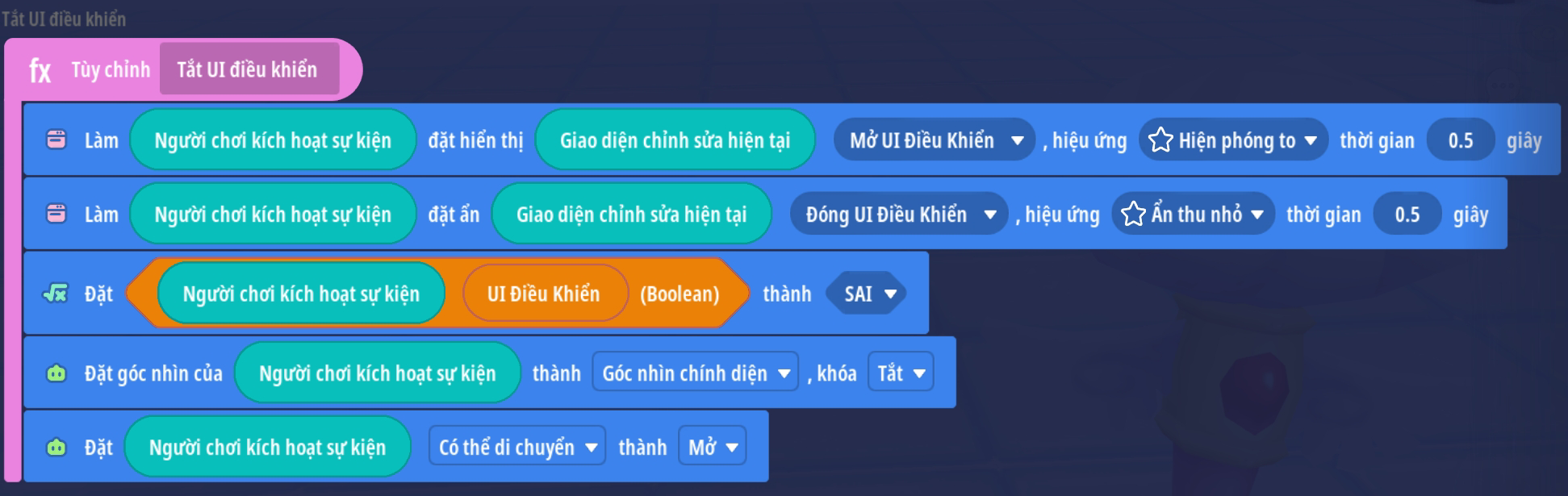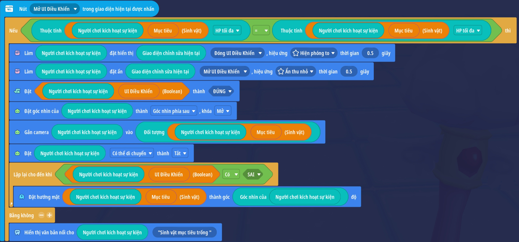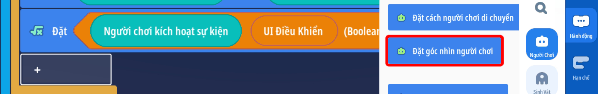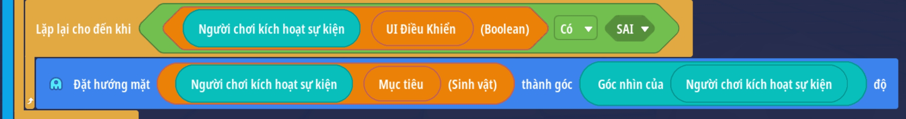 - Thêm hành động thay đổi góc đối tượng theo người chơi đến khi giá trị Boolean là Sai ( Người chơi không ở UI điều khiển )