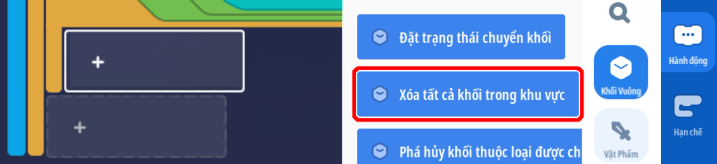 - Vị trí sự kiện hiện tại là vị trí dưới khối triệu hồi