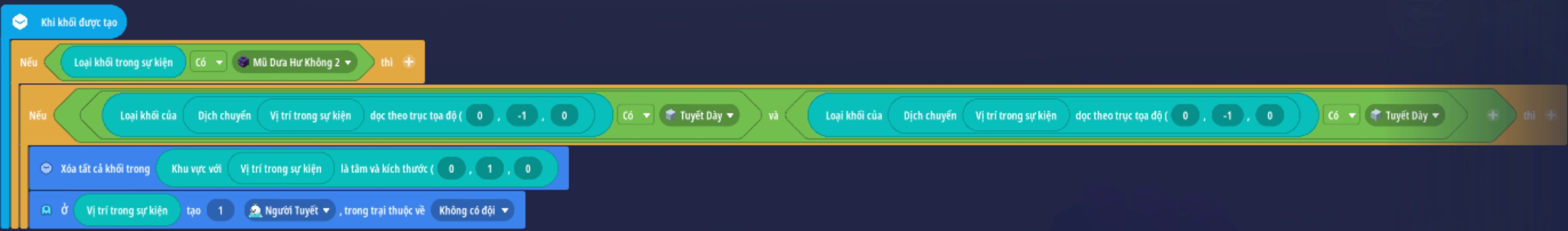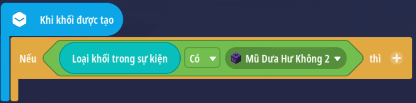 - Sự kiện xảy ra với điều kiện khối triệu hồi (khối dưa-đầu) được tạo cuối (Có thể bổ sung thêm sự kiện)