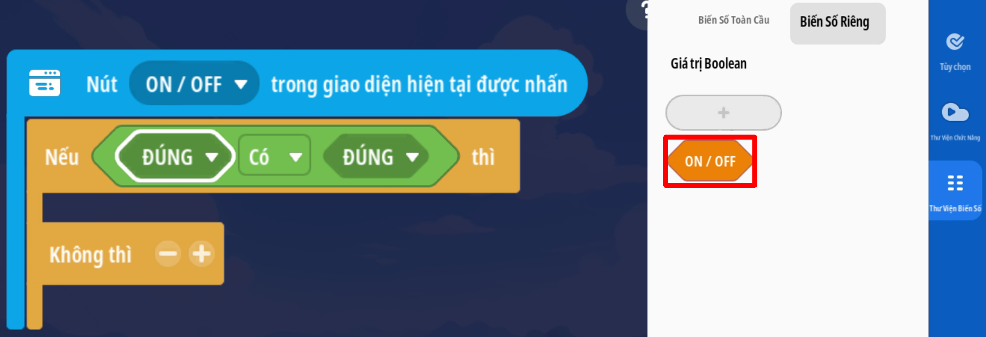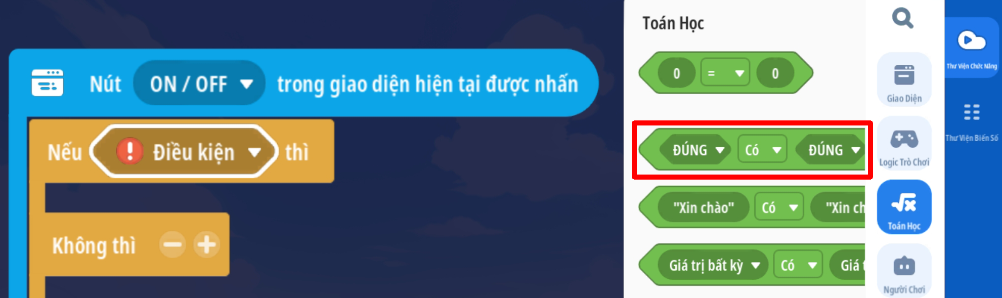 1. Sự kiện nhấp nút ( giá trị boolean là sai - chưa ngắm )