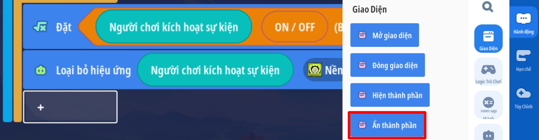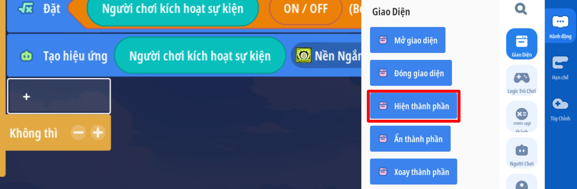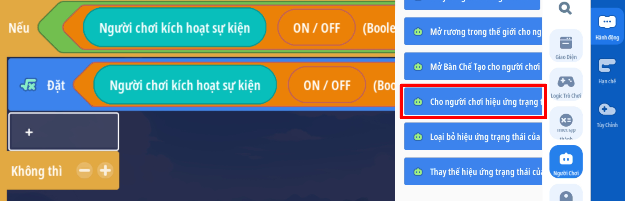 - ( Trigger hỗ trợ ): Hiển thị hình ảnh theo loại vật phẩm cầm tay