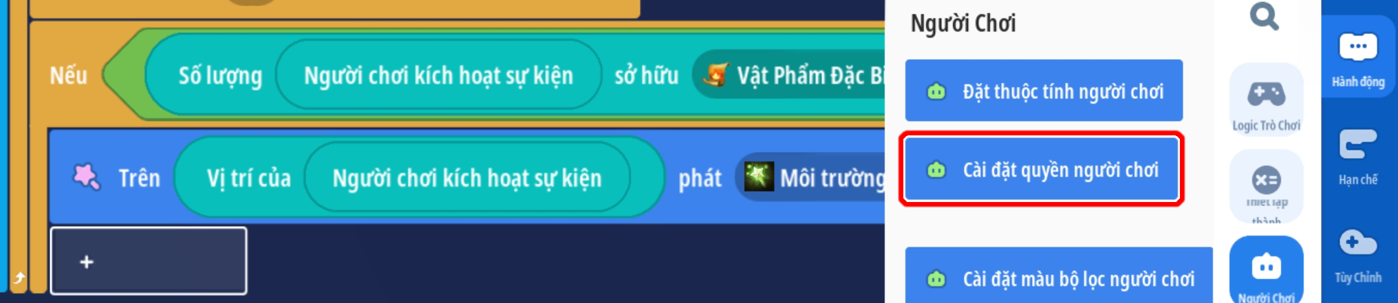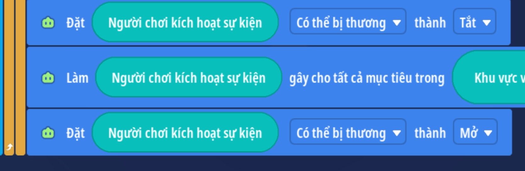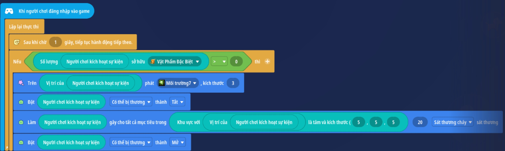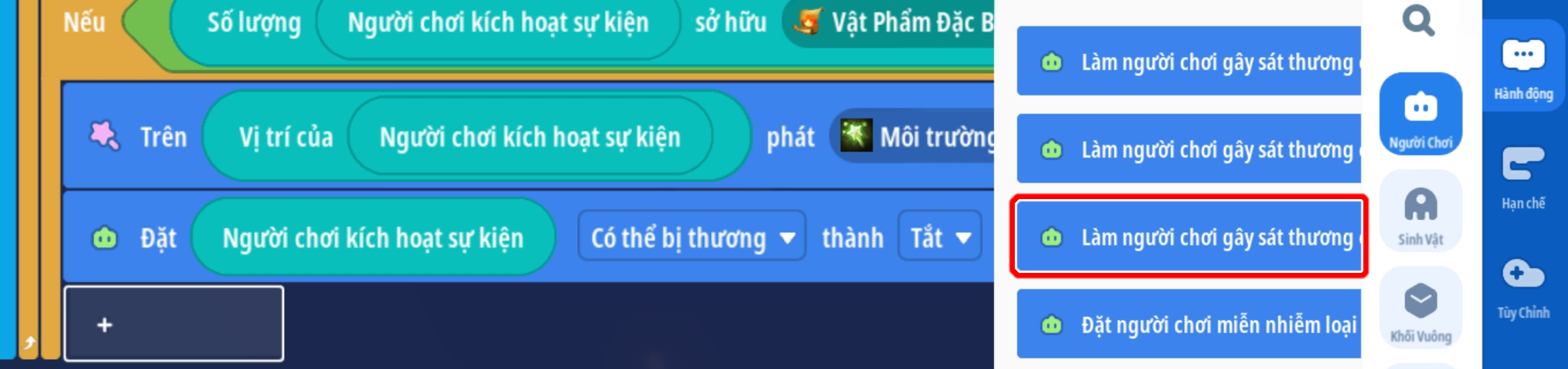 - Đặt người chơi miễn nghiệm sát thương ( tránh người chơi tự gây sát thương lên bản thân )