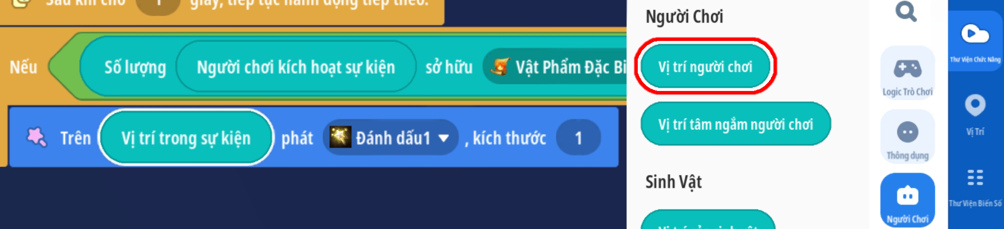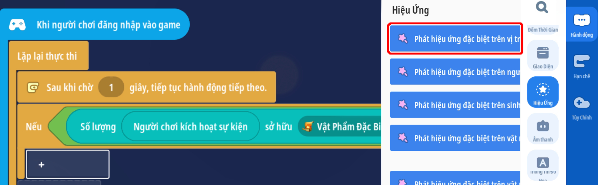 - Phát hiệu ứng tại vị trí người chơi, tăng sự sống động