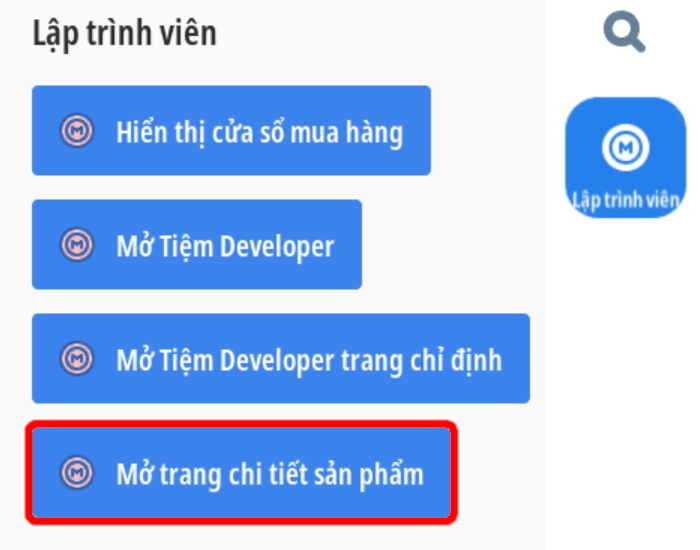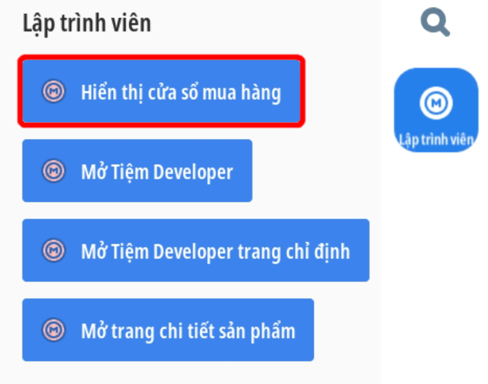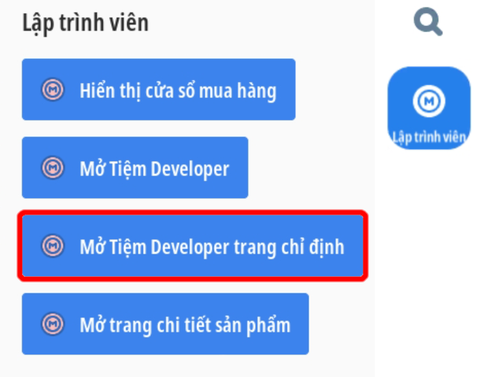 - Trigger: Mở tiệm – chỉ hiện 1 số trang chỉ định