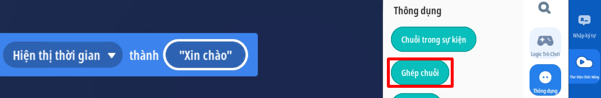 - Tạo chức năng ghép chuỗi ở phần nội dung