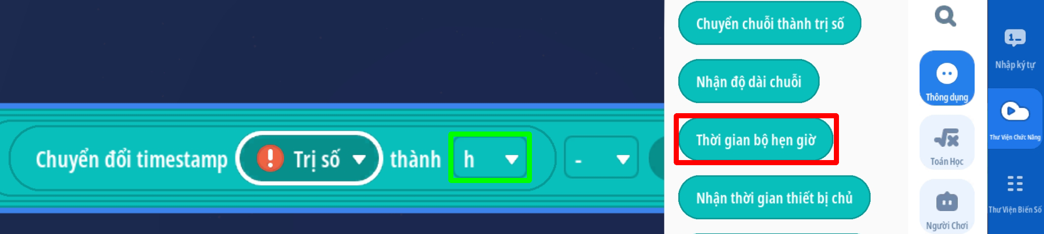 - Ô chuỗi đánh số 1, đặt chuyển trị số 'timestamp dạng giờ - 8' thành chuỗi