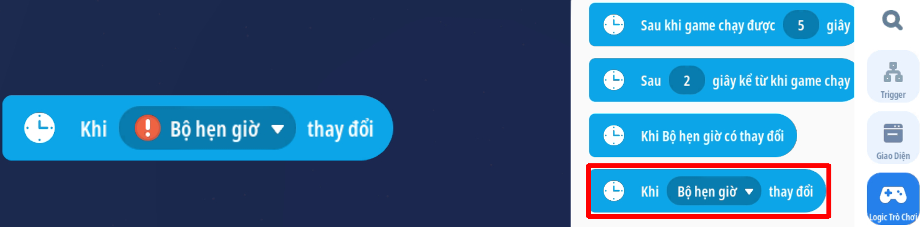 2. Tạo trigger hiển thị thông tin thời gian
