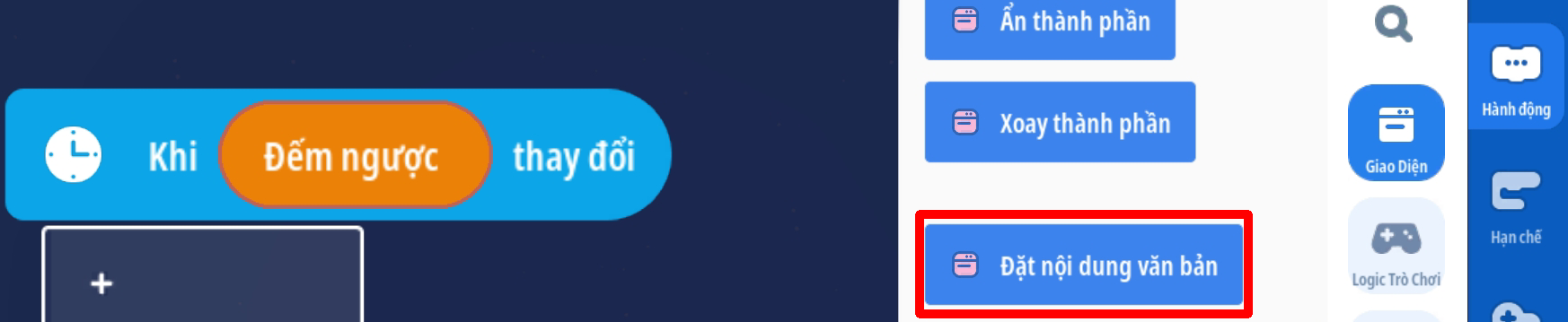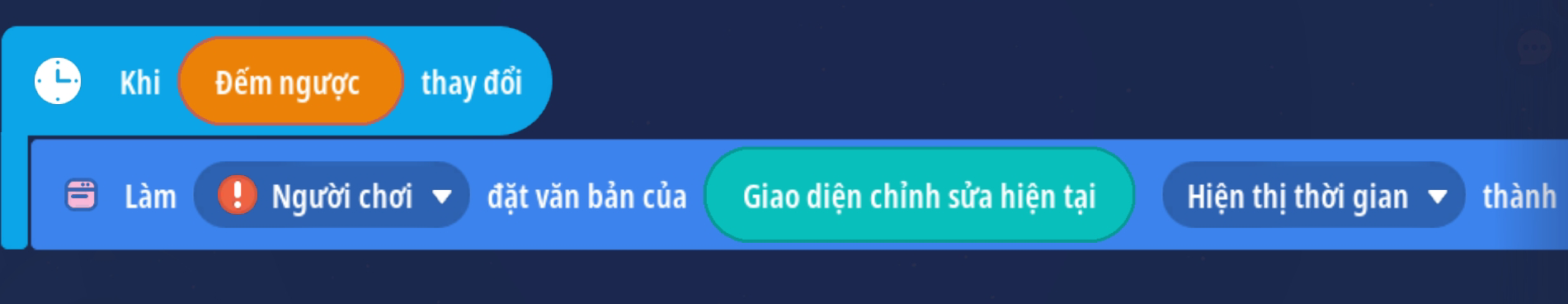 - Sự kiện bộ hẹn giờ chỉ định thay đổi, tạo hành động đặt nội dung văn bản với người chơi không xác định ( Mẹo )