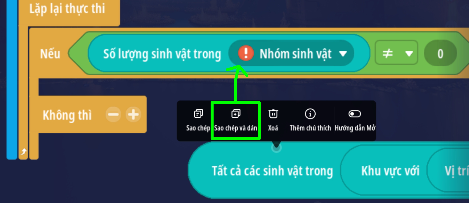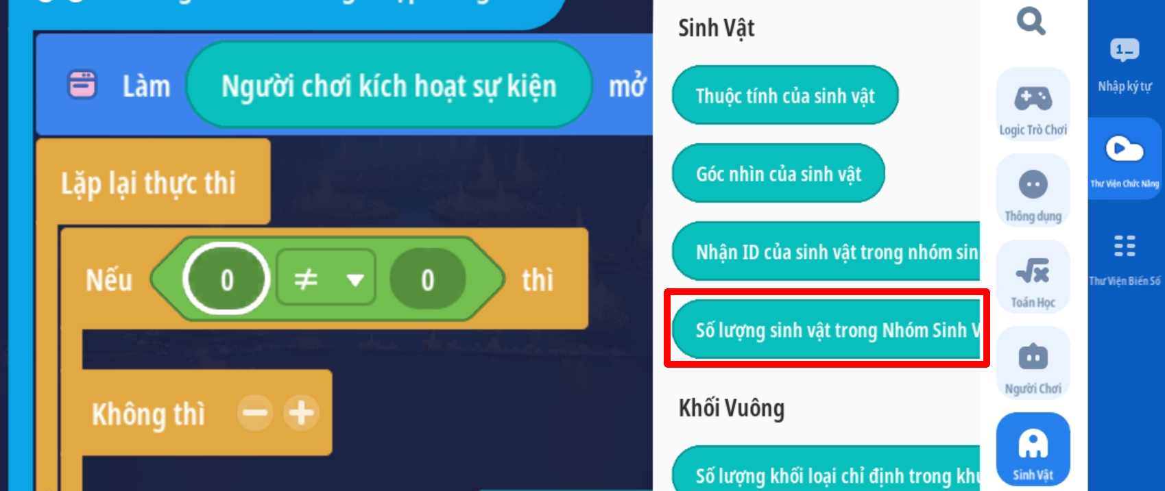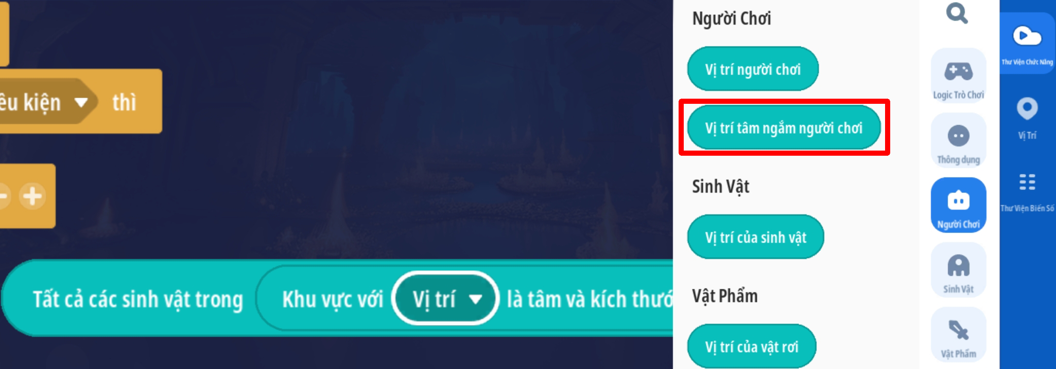 2. Thiết lập điều kiện xác định có sinh vật ở vị trí tâm ngắm người chơi không