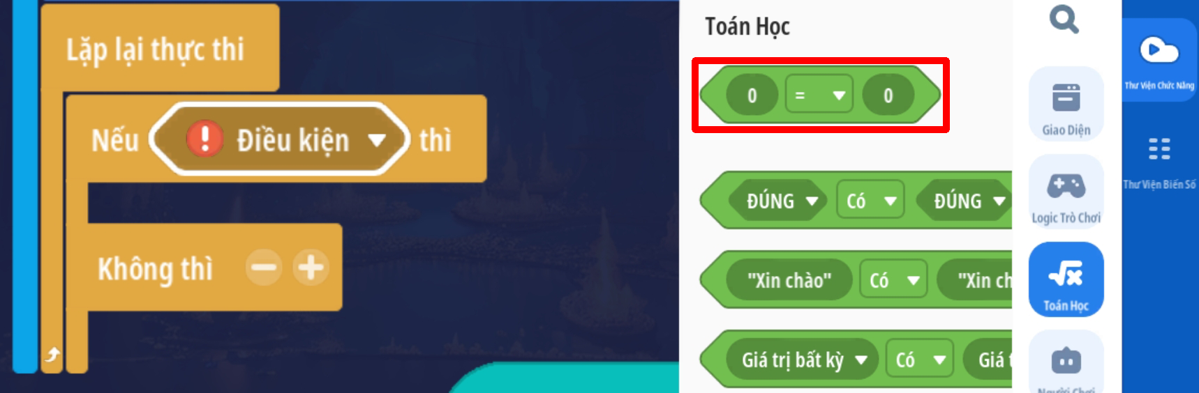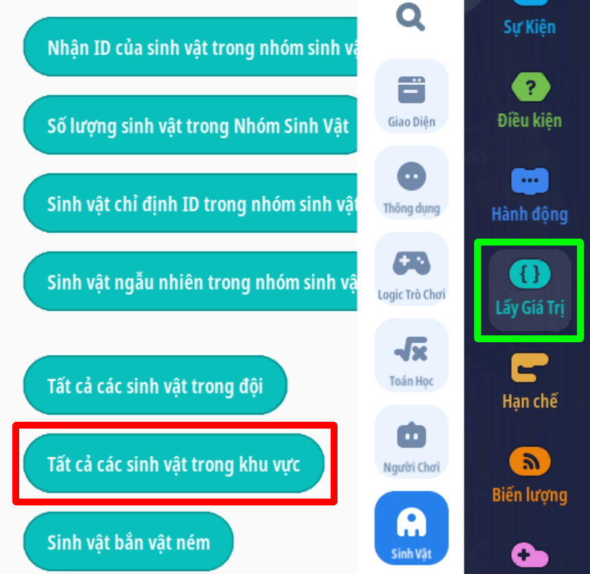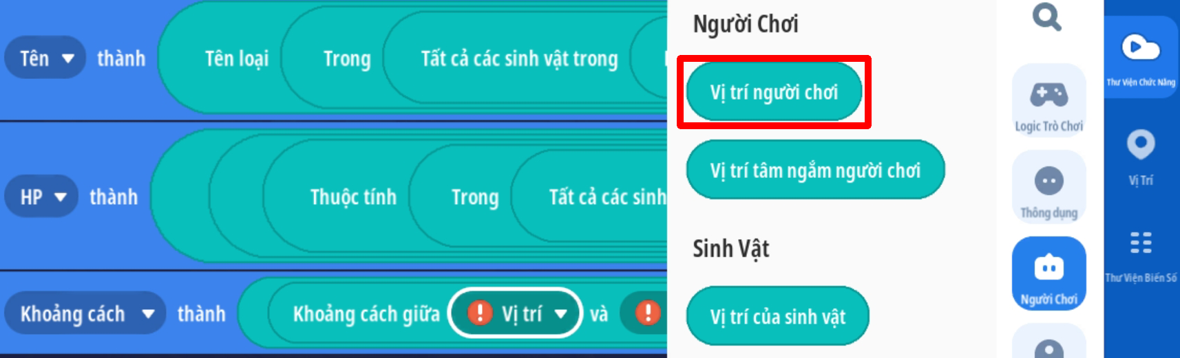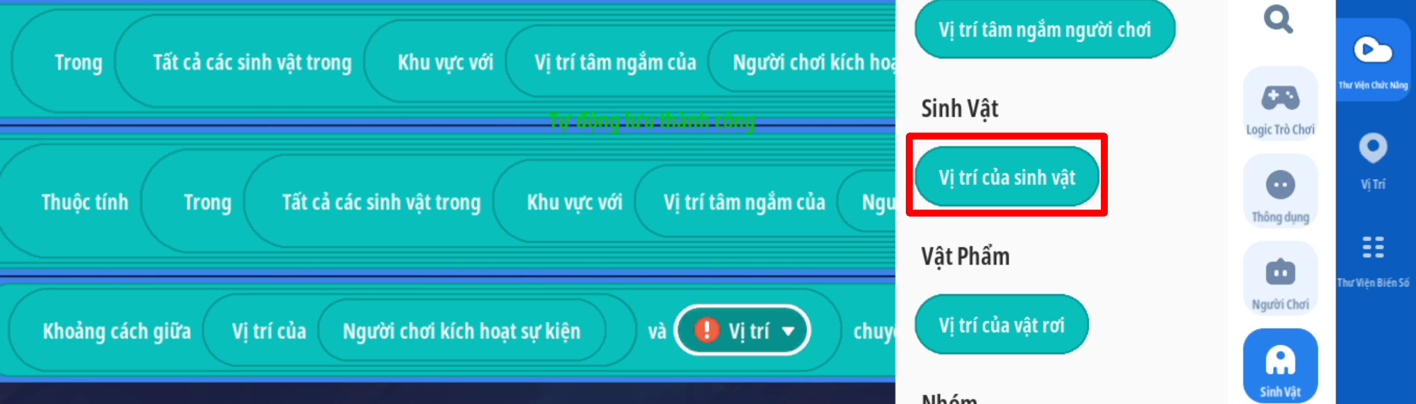 2. Thiết lập điều kiện xác định có sinh vật ở vị trí tâm ngắm người chơi không