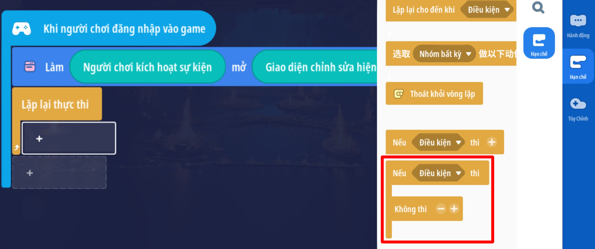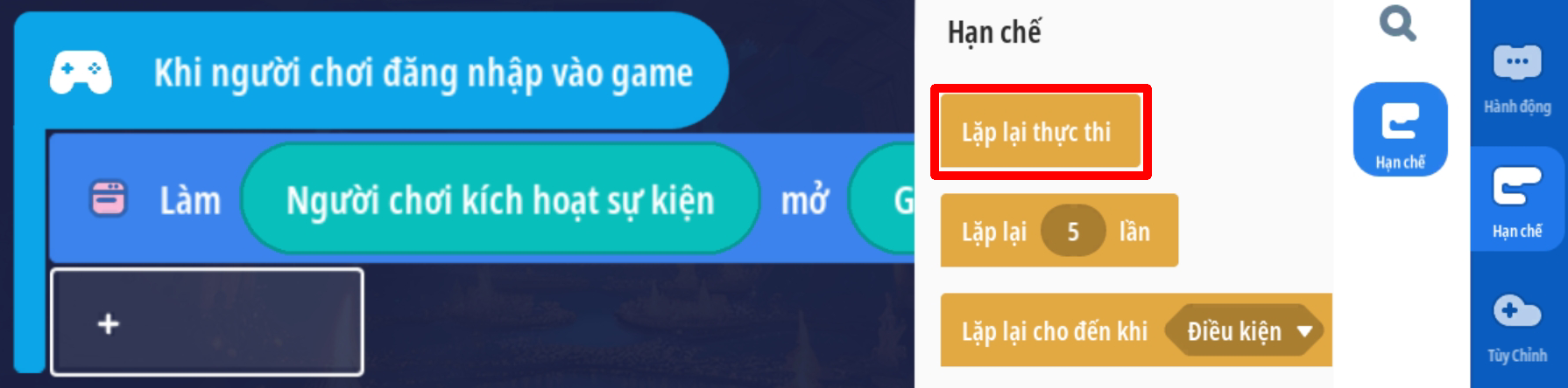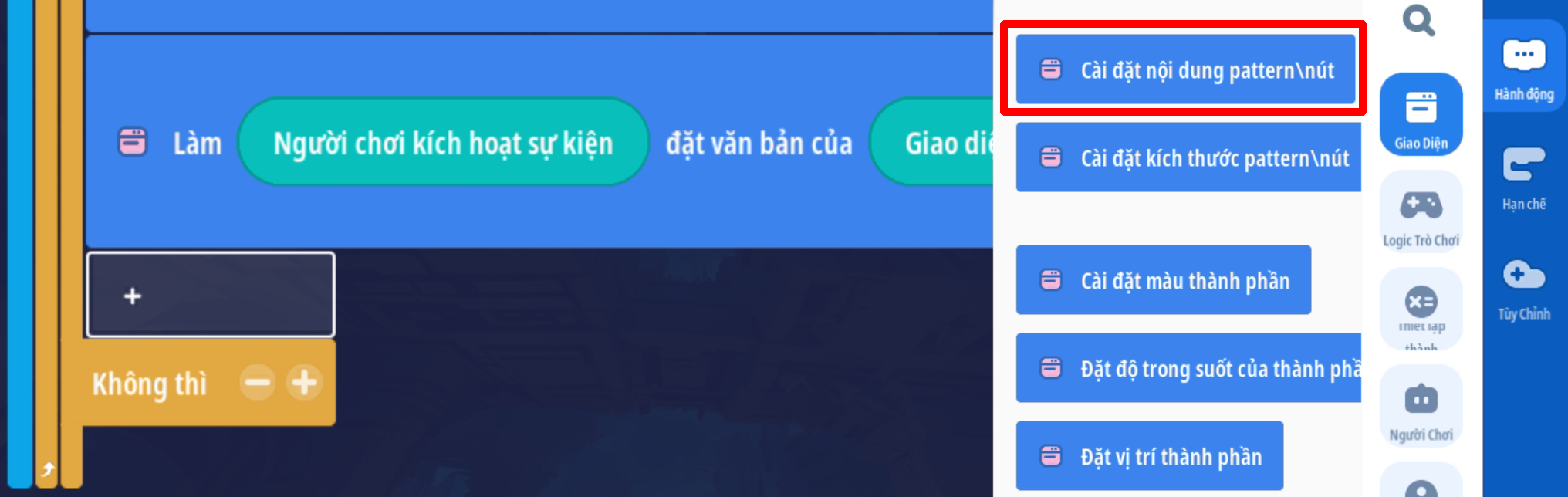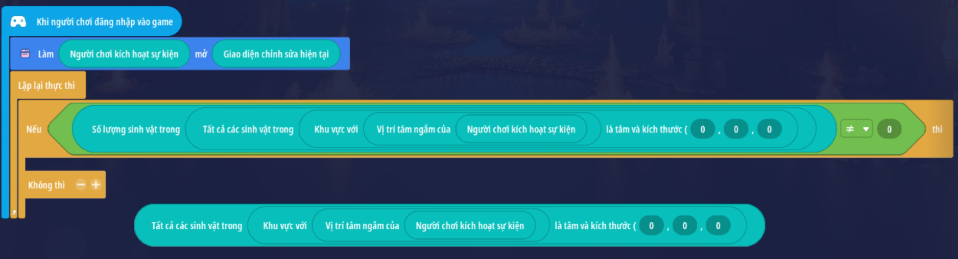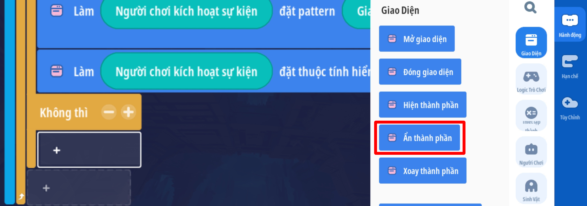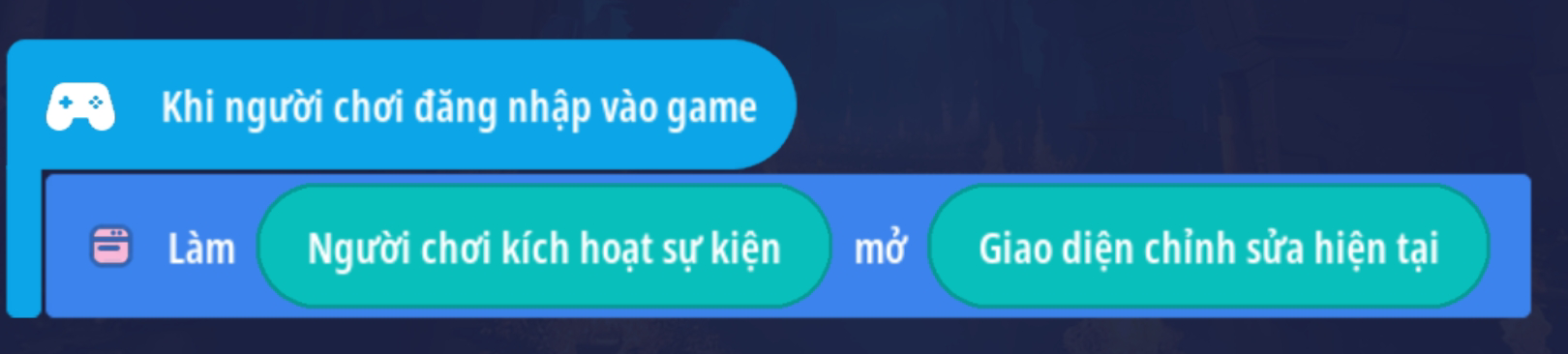 - Mở giao diện: > Tạo sự kiện để mở giao diện ( Tuy chức năng mỗi bản đồ)