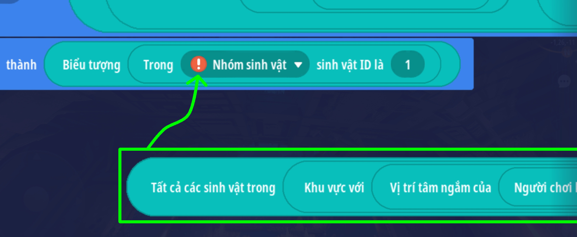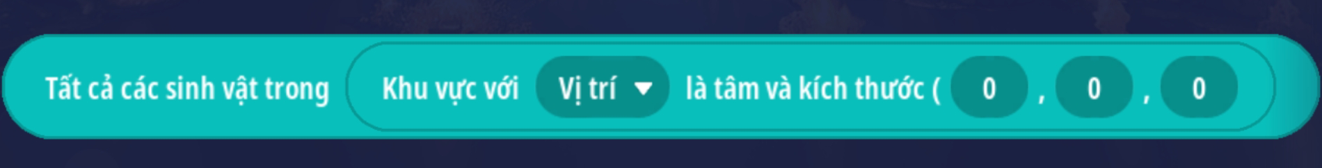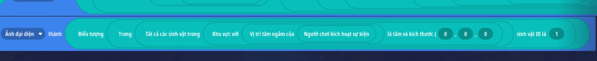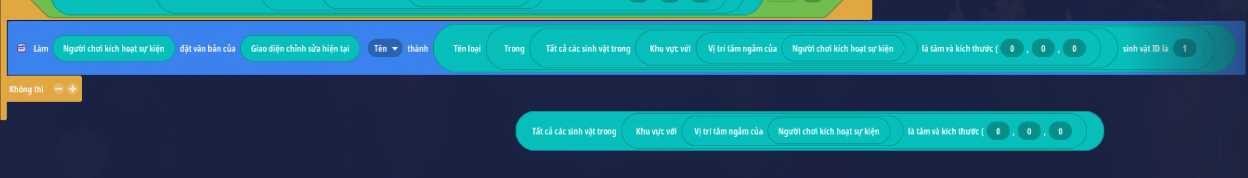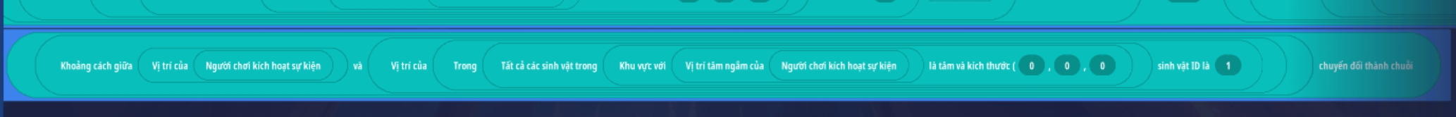 3. Đặt nội dung văn bản thành phần 'Tên' thành tên sinh vật có ID 1 ở khu vực vị trí tâm ngắm người chơi
