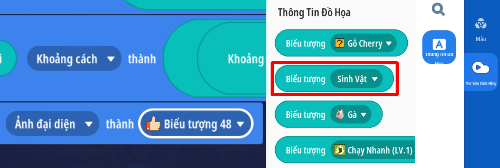 6. Đặt hình ảnh thành phần 'Ảnh đại diện' thành biểu tượng sinh vật có ID 1 ở khu vực vị trí tâm ngắm người chơi