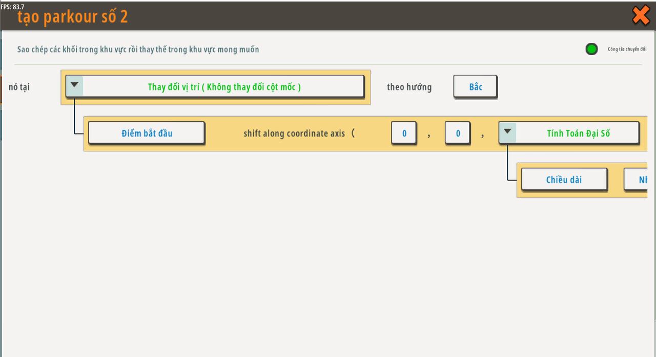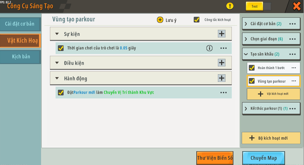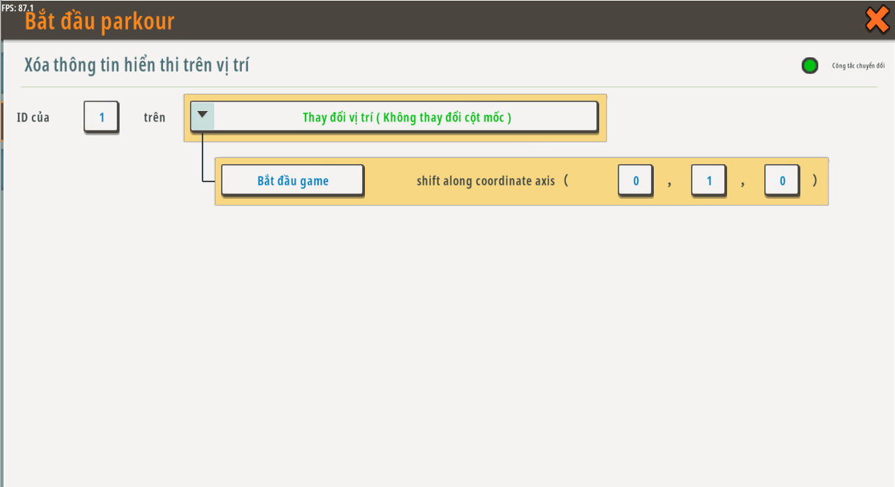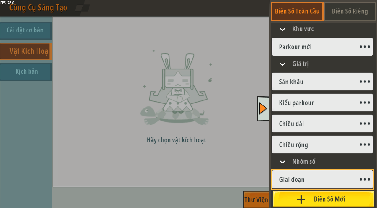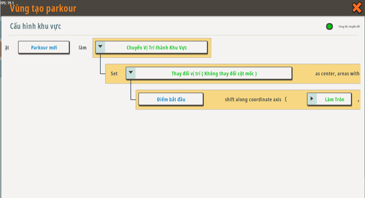 | Biến toàn cục | tạo parkour mới | Khu vực | Không có giá trị mặc định | N/A |