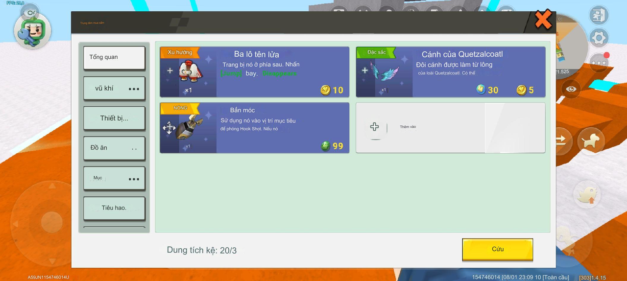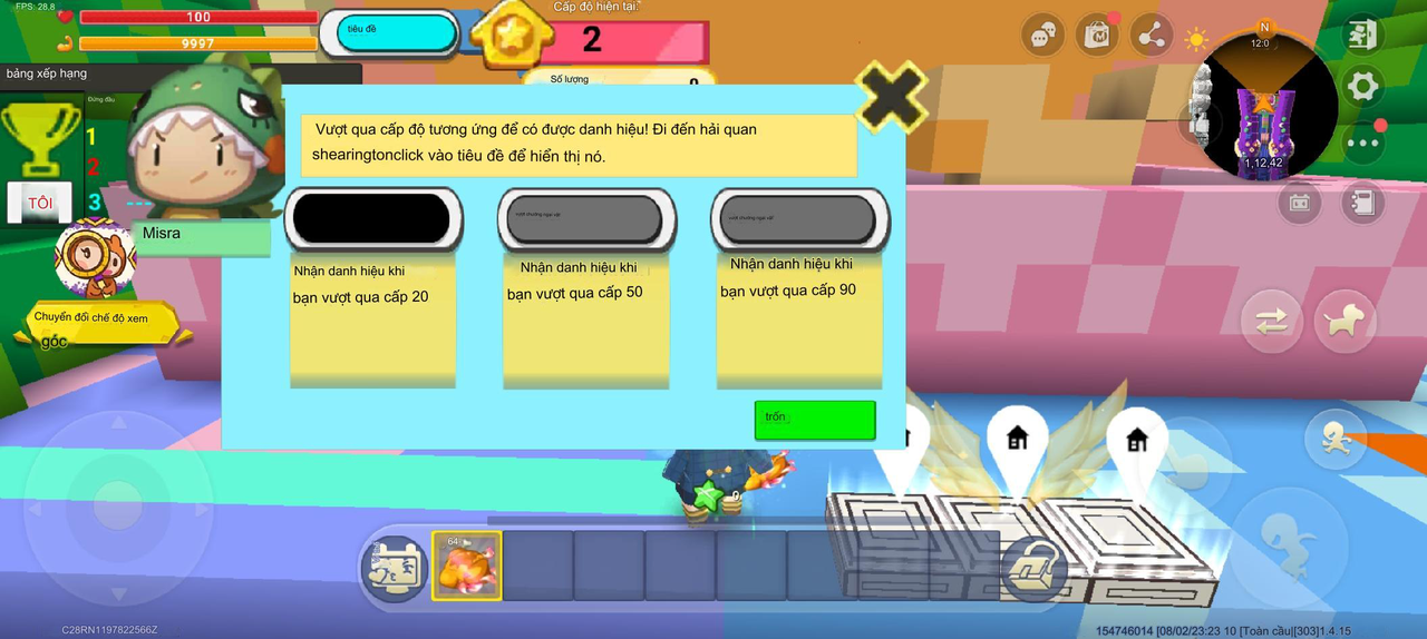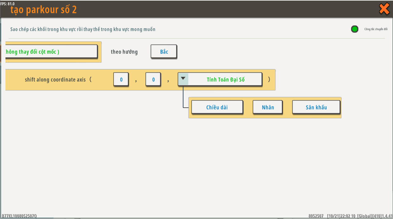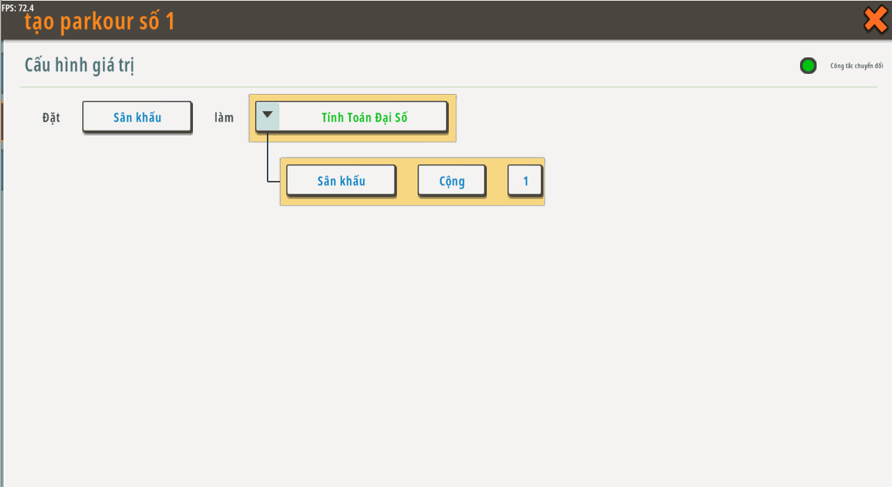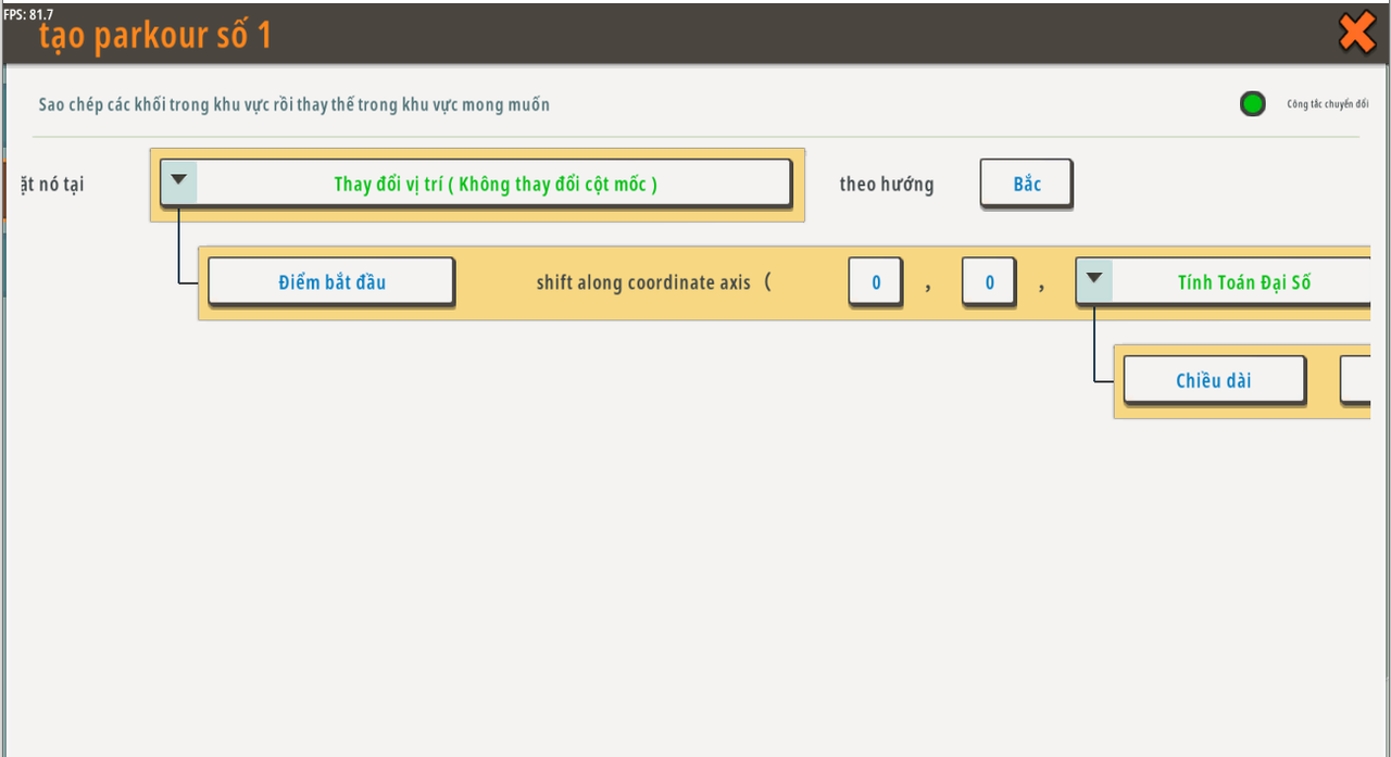 | Biến toàn cục | tạo parkour mới | Khu vực | Không có giá trị mặc định | N/A |