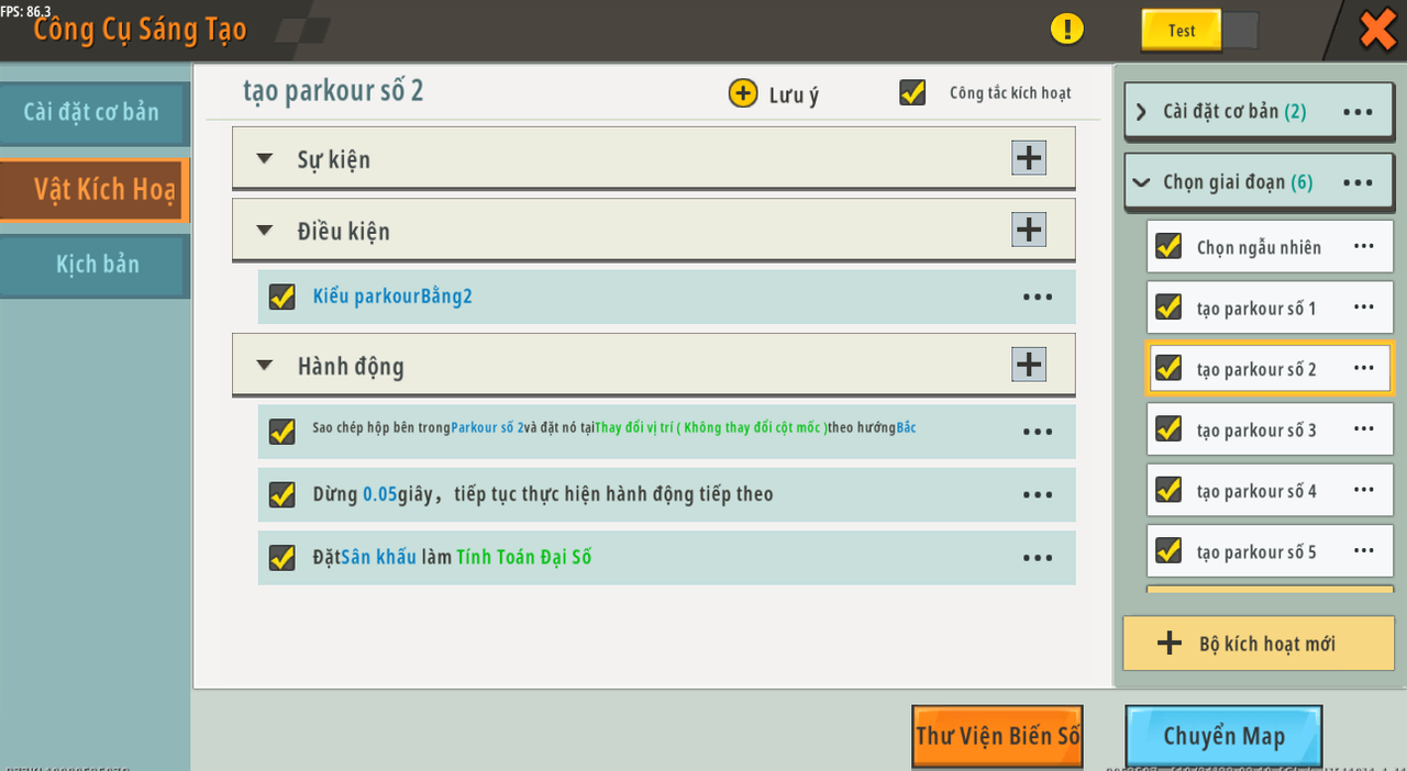 Sau đó, chúng ta cần tạo sân khấu parkour. Đây là kích hoạt chúng ta cần: