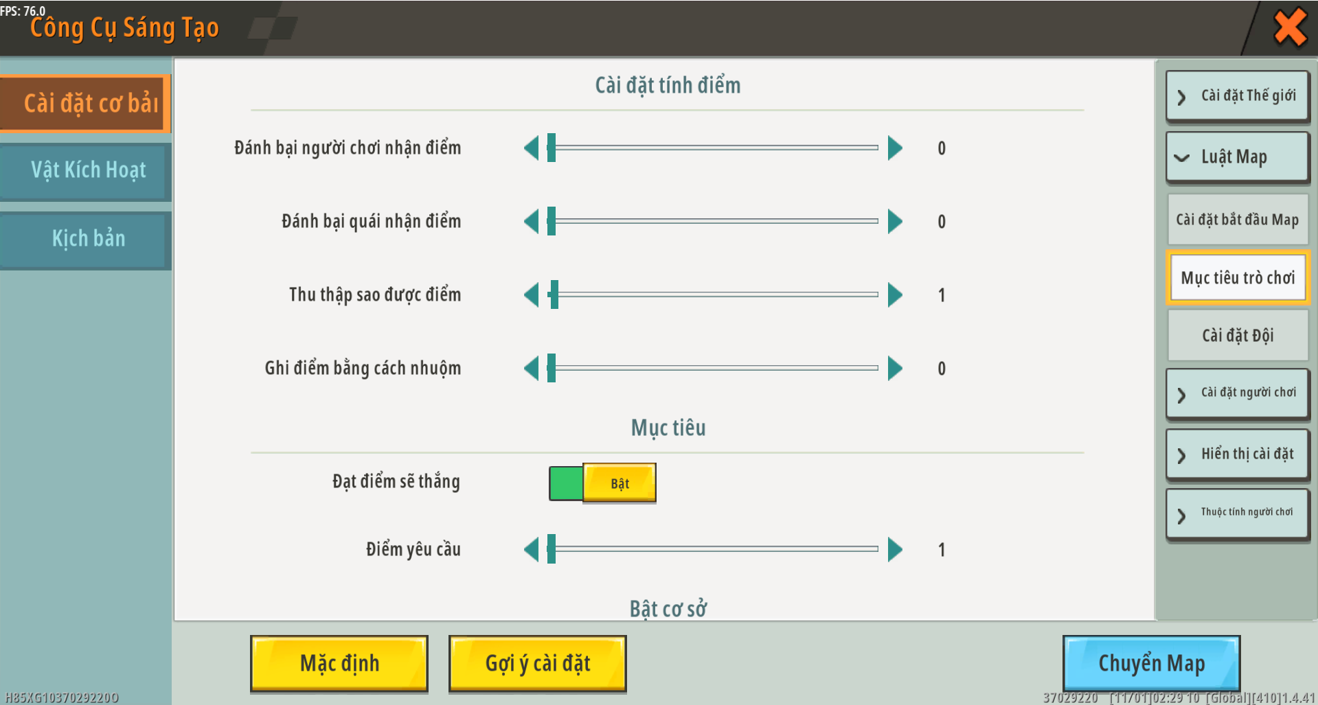1. Trong “Quy tắc bản đồ” → “Mục tiêu trò chơi” → “Thiết lập tính điểm”, đặt số điểm của “Điểm khi thu thập sao” thành số lớn hơn 1 (Trong hướng dẫn này, chúng tôi đặt là 1.)