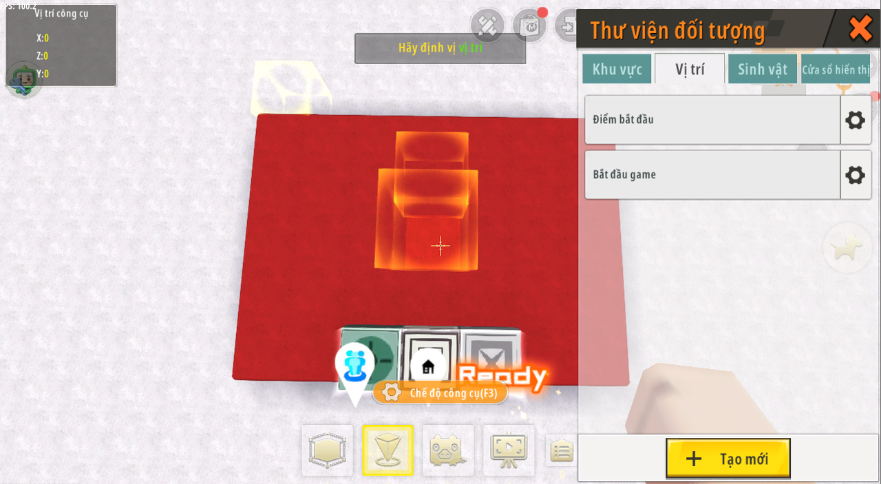 4.Đặt hai địa điểm. Vị trí đầu tiên phải được đặt ở bất kỳ đâu mà người chơi có thể chạm vào khi người chơi ở khu vực bắt đầu và chúng ta có thể đổi tên thành “bắt đầu trò chơi”. Vị trí thứ hai phải được đặt ở {giống như chiều dài của điểm bắt đầu, giống như chiều cao của điểm bắt đầu, giống như chiều rộng của điểm bắt đầu +1} và chúng ta có thể đổi tên thành “điểm bắt đầu” . Bạn có thể thiết lập các vị trí theo hình ảnh sau đây.