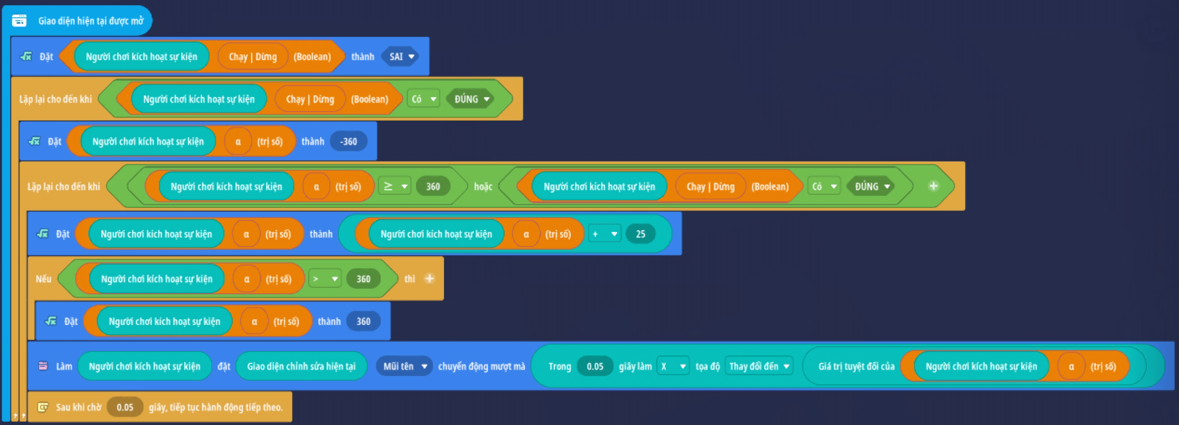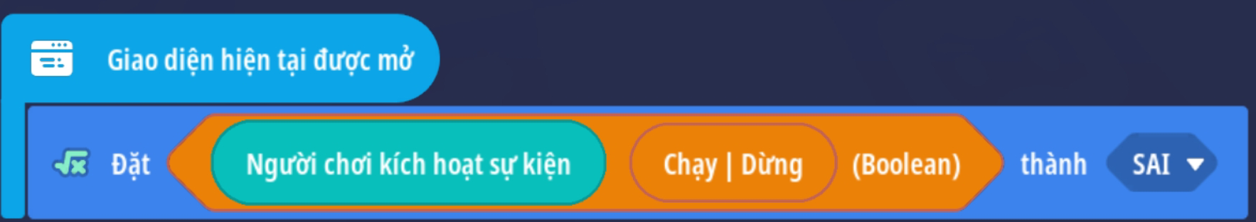 - Đặt giá trị Boolean thành Sai ( Trò chơi đang hoạt động )