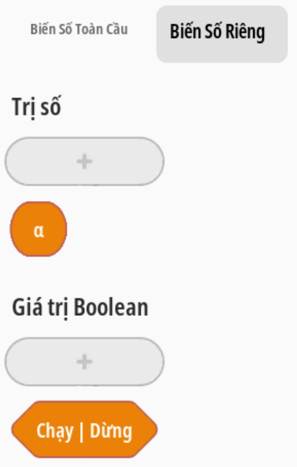 - Tạo biến riêng Giá trị và biến riêng Boolean