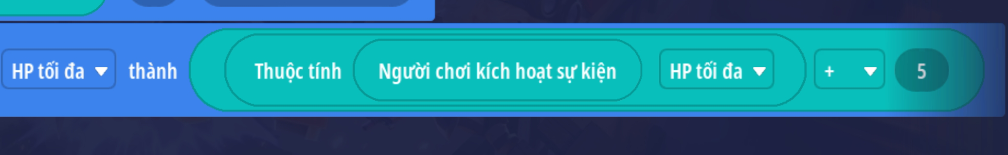 Thêm hành động đặt thuộc tính của người chơi HP tối đa thành giá trị HP tối đa + 5