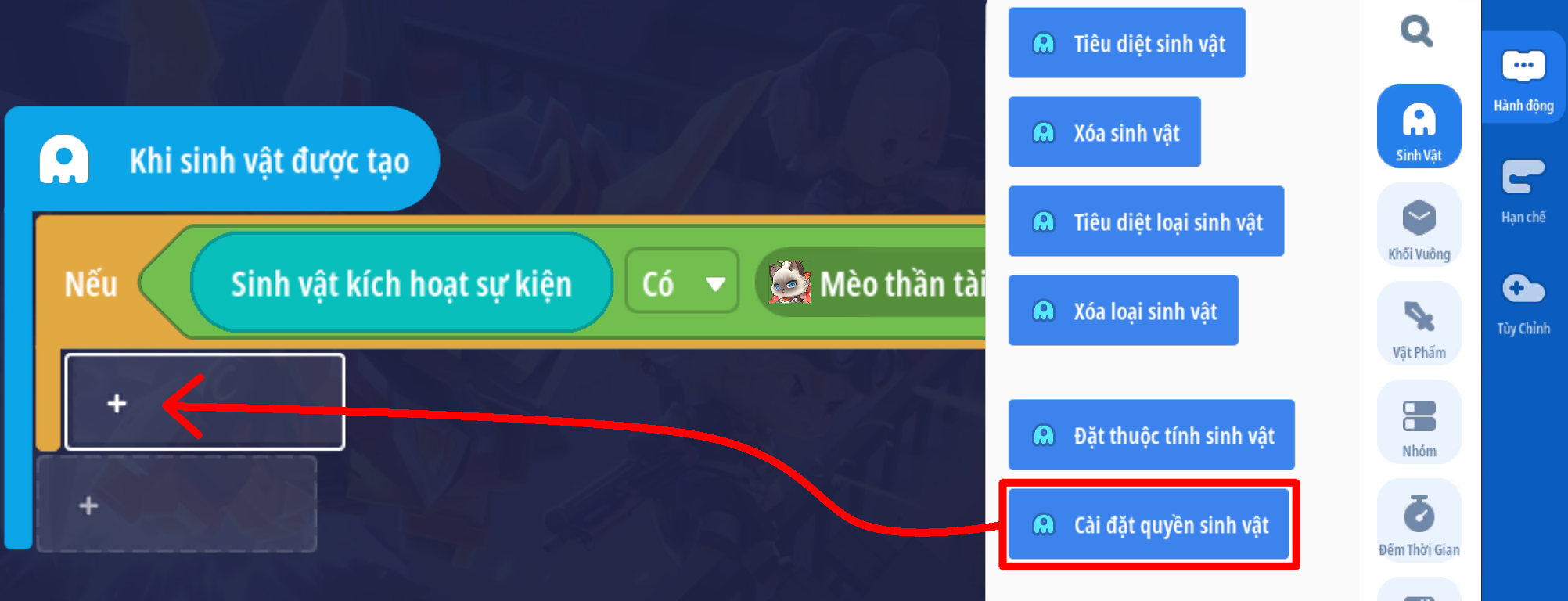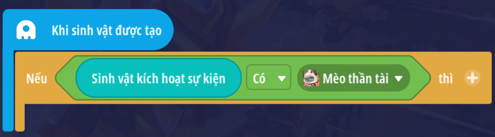 Thêm điều kiện xác định sinh vật trong kích hoạt sự kiện là NPC Mèo thần tài