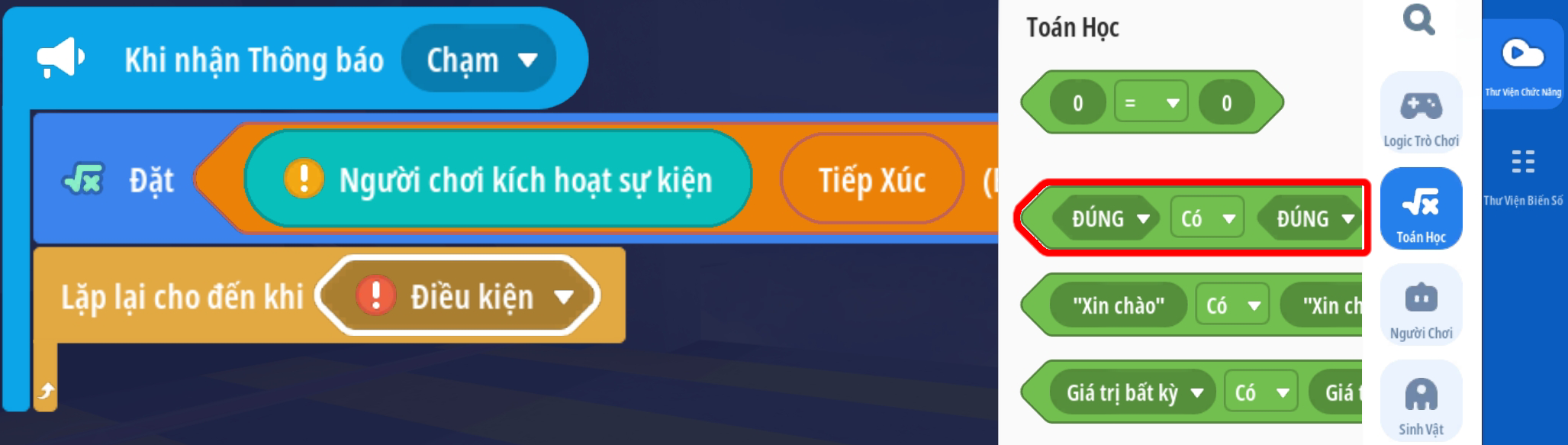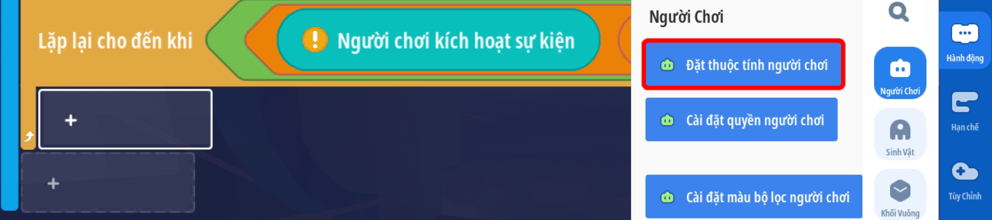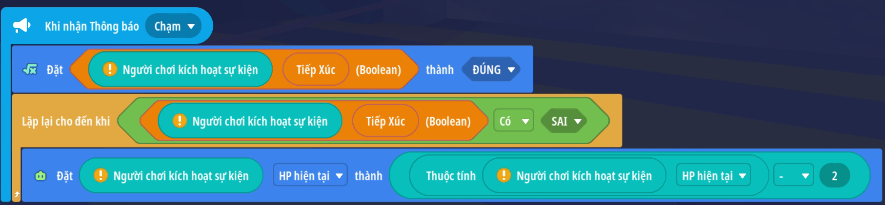 - Tạo hành động gây sát thương đến khi giá trị Boolean có giá trị Sai ( Người chơi rời khỏi tia laser )