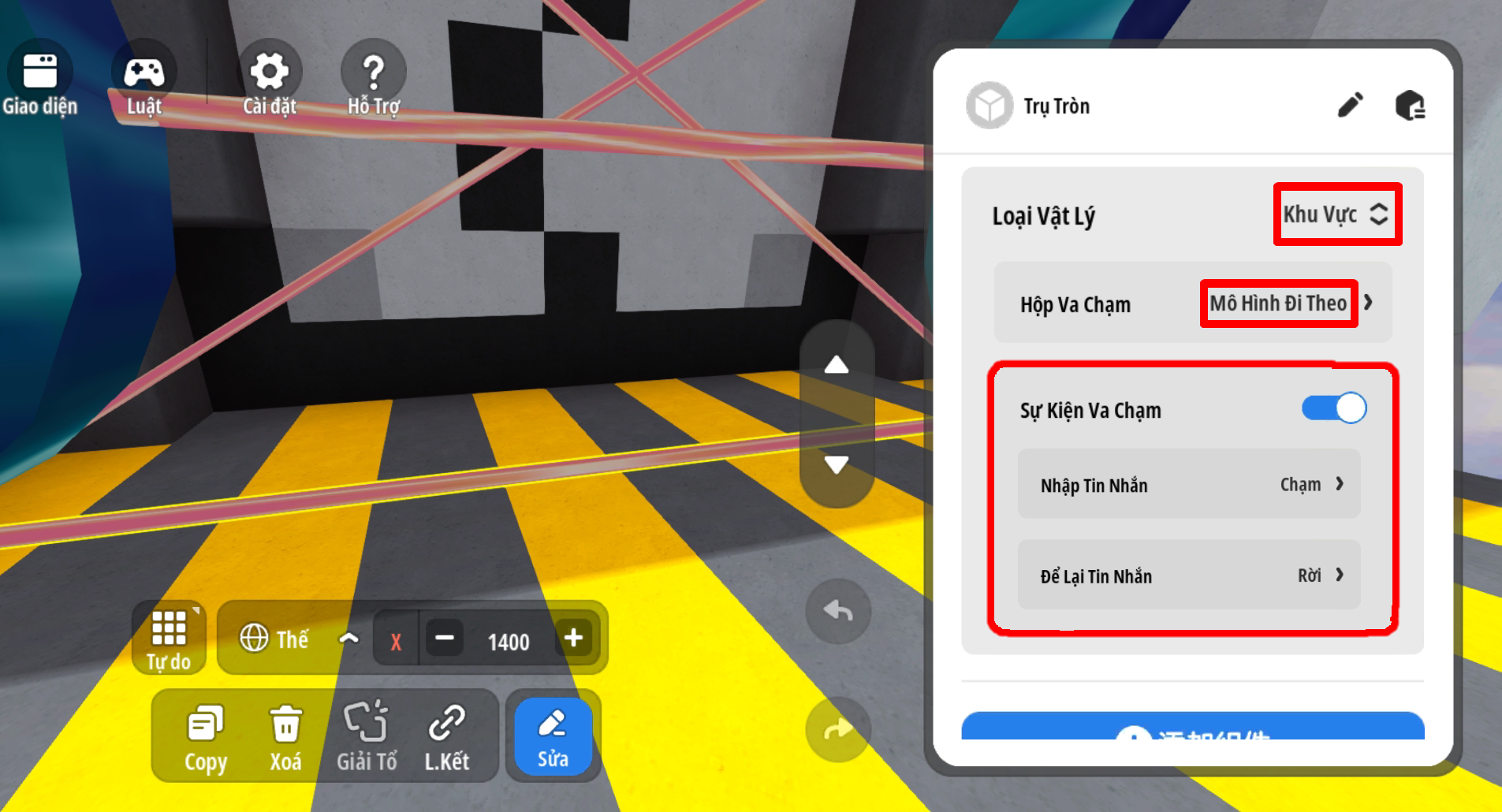 - Lưu ý: Chức năng sẽ gặp sự cố với việc va chạm cùng lúc giữa 2 tia laser. Ví dụ trường hợp người chơi đang bị tia laser ( đứng yên ) chiếu gây sát thương, khi có tia laser ( chuyển động ) lướt qua hiệu ứng gây sát thương sẽ mất. Cách loại bỏ sự cố, tránh các trường hợp có 2 tia laser cùng lúc chiếu qua ( trong đó có 1 tia chuyển động nhanh hơn tia còn lại )