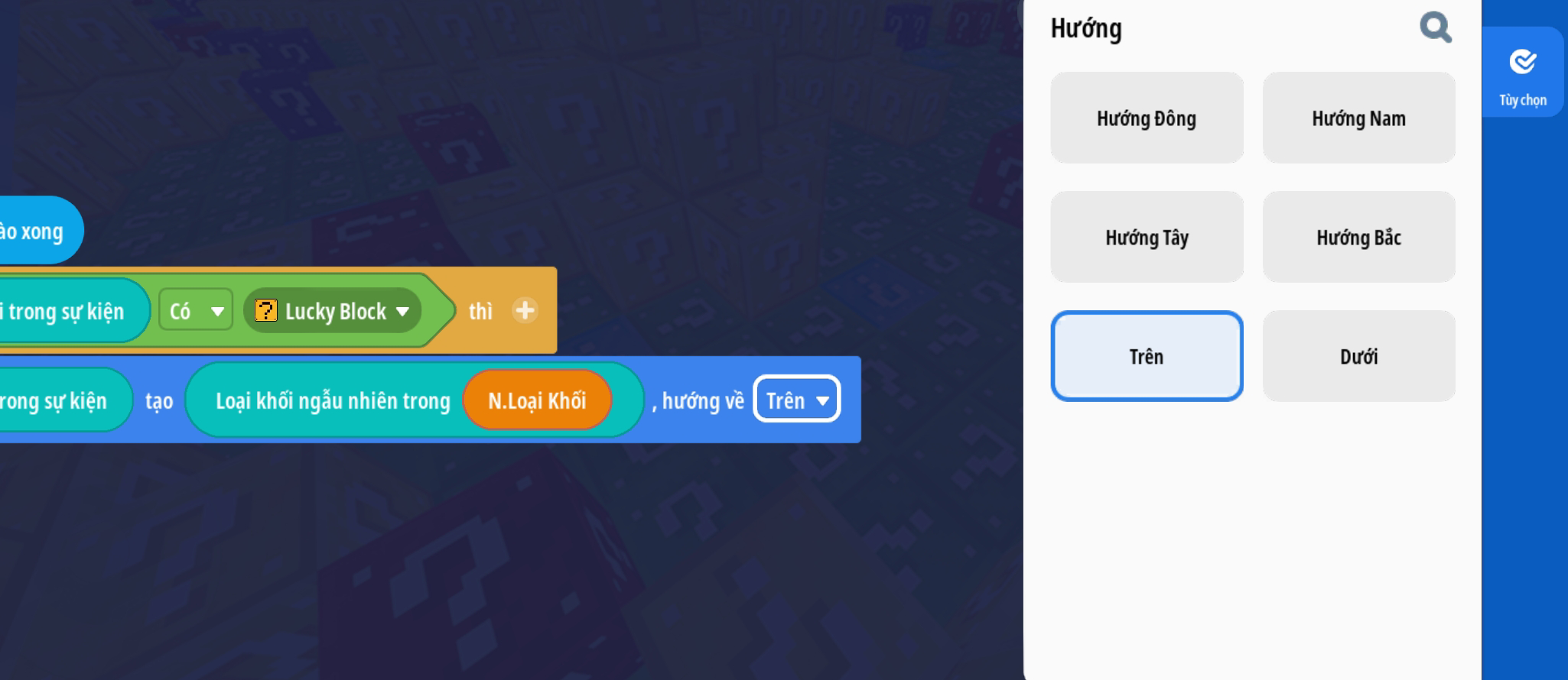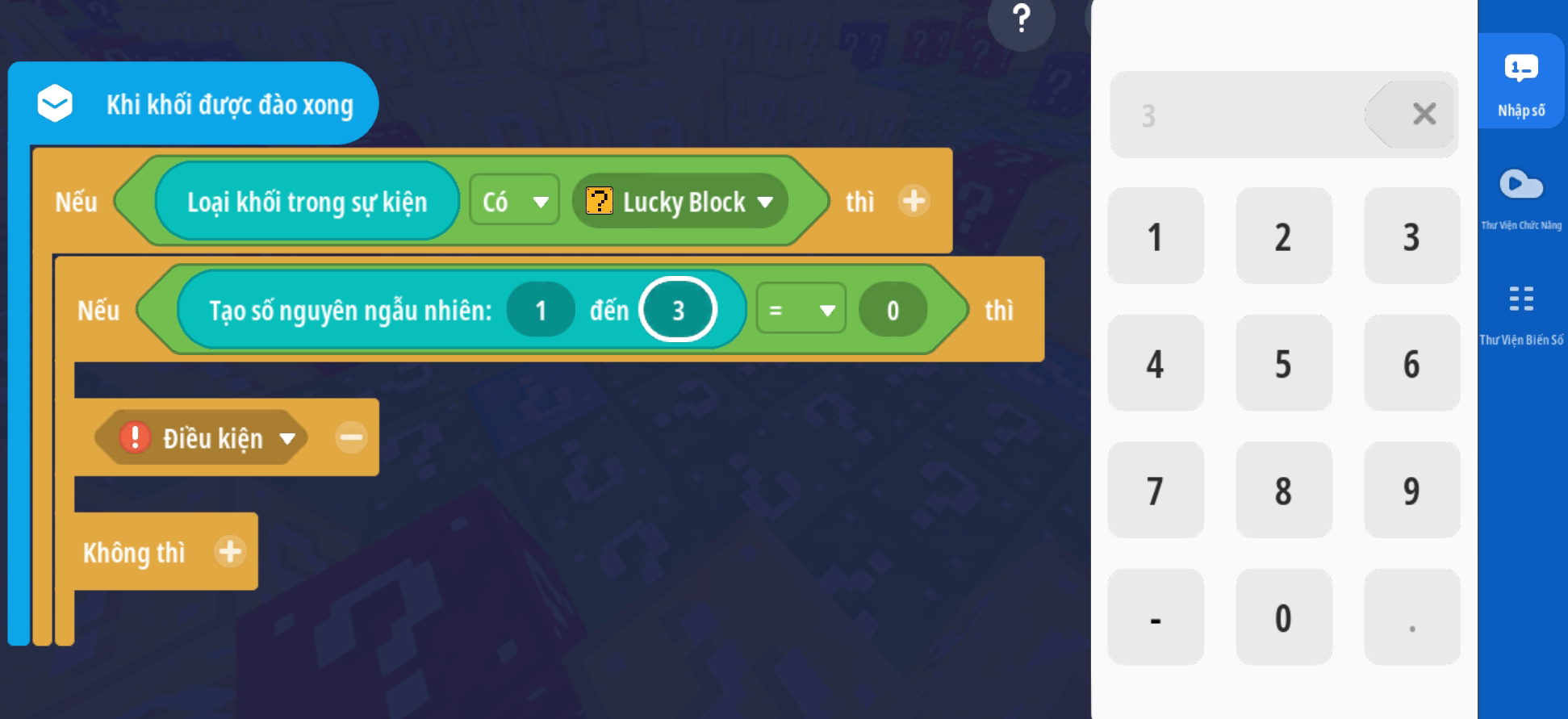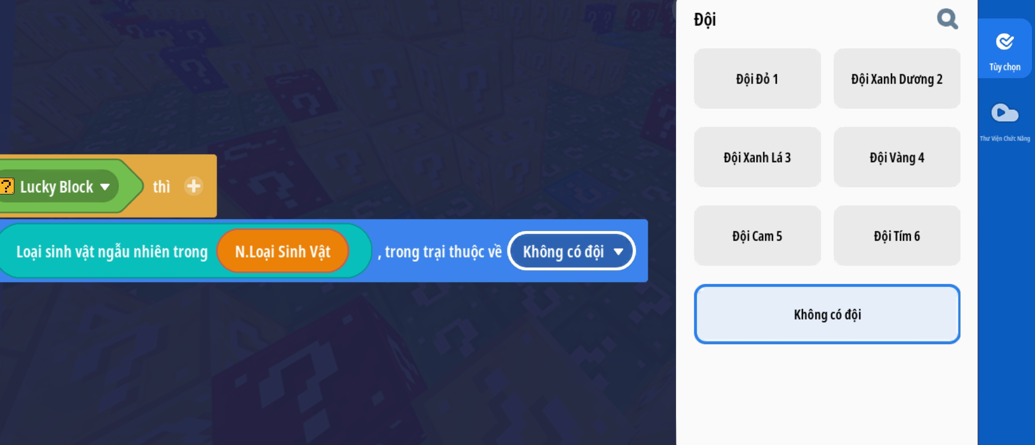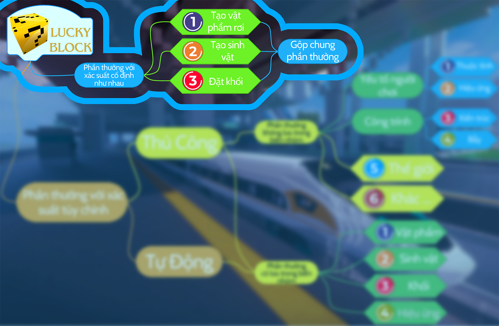 Mô tả chức năng: Khi người chơi tác động sự kiện với khối vuông sẽ rơi ra vật phẩm, tạo sinh vật hoặc tạo khối với xác suất như nhau