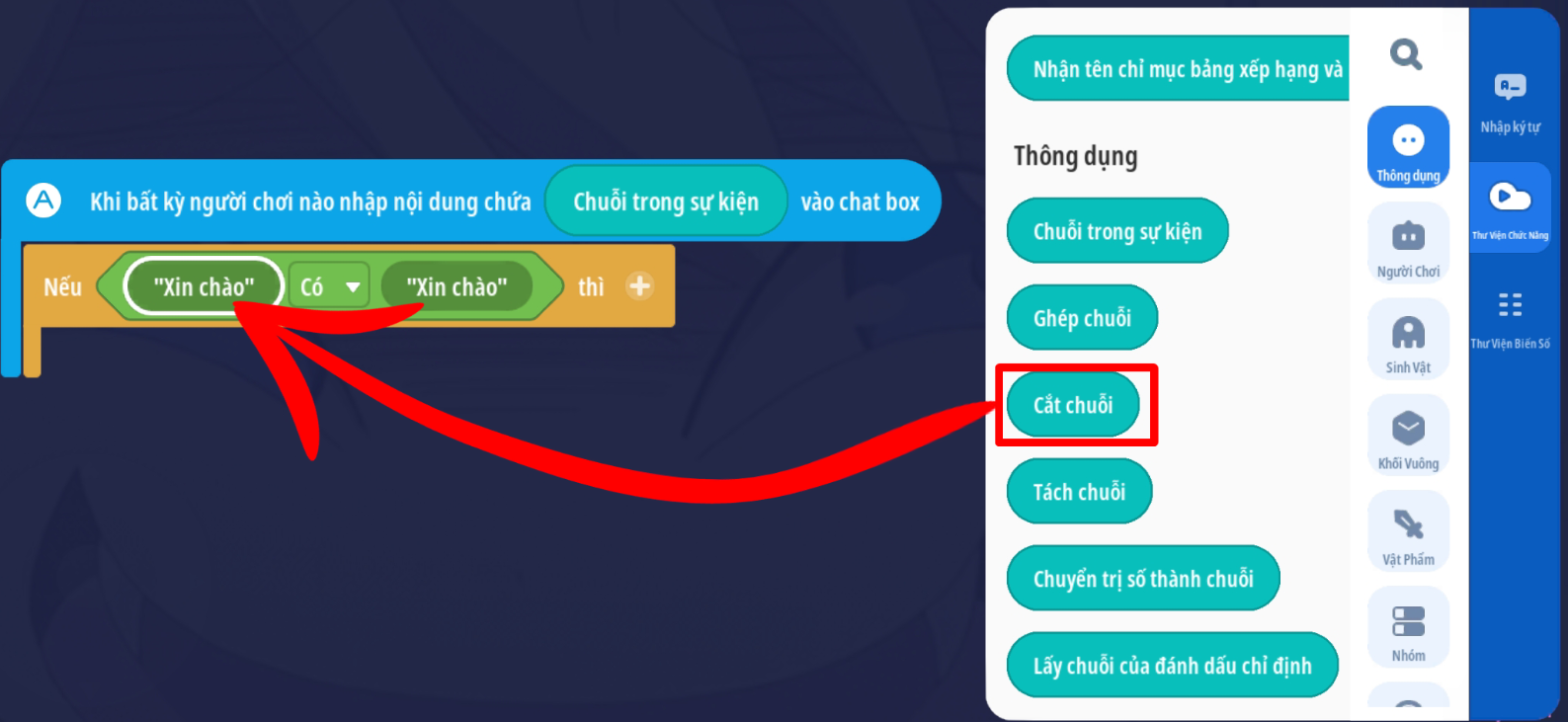 - 4/ Thêm chức năng cắt chuỗi trong thư viện chức năng